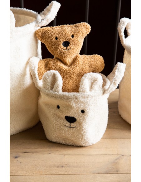 Bu sevimli saklama sepeti Teddy, oyuncaklar, giysiler ve diğer şeyler gibi çeşitli şeyleri saklamak için çok uygundur. Saklama sepeti, oyuncak çantası veya çamaşır sepeti olarak kullanmak için ideal boyuta sahiptir. Bu sayede çocuğunuzun eşyalarını pratik ve güzel bir şekilde saklayabilirsiniz. Yumuşak oyuncak kumaş ve sevimli ayı kulakları anında neşeli bir dokunuş sağlar. Sepet, nemli bir bezle temizlenmesi kolay, kullanışlı bir iç astara sahiptir.