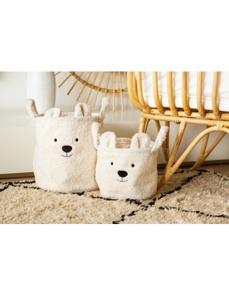 Bu sevimli saklama sepeti Teddy, oyuncaklar, giysiler ve diğer şeyler gibi çeşitli şeyleri saklamak için çok uygundur. Saklama sepeti, oyuncak çantası veya çamaşır sepeti olarak kullanmak için ideal boyuta sahiptir. Bu sayede çocuğunuzun eşyalarını pratik ve güzel bir şekilde saklayabilirsiniz. Yumuşak oyuncak kumaş ve sevimli ayı kulakları anında neşeli bir dokunuş sağlar. Sepet, nemli bir bezle temizlenmesi kolay, kullanışlı bir iç astara sahiptir.