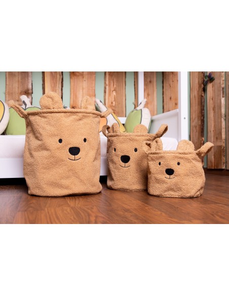 Bu sevimli saklama sepeti Teddy, oyuncaklar, giysiler ve diğer şeyler gibi çeşitli şeyleri saklamak için çok uygundur. Saklama sepeti, oyuncak çantası veya çamaşır sepeti olarak kullanmak için ideal boyuta sahiptir. Bu sayede çocuğunuzun eşyalarını pratik ve güzel bir şekilde saklayabilirsiniz. Yumuşak oyuncak kumaş ve sevimli ayı kulakları anında neşeli bir dokunuş sağlar. Sepet, nemli bir bezle temizlenmesi kolay, kullanışlı bir iç astara sahiptir.