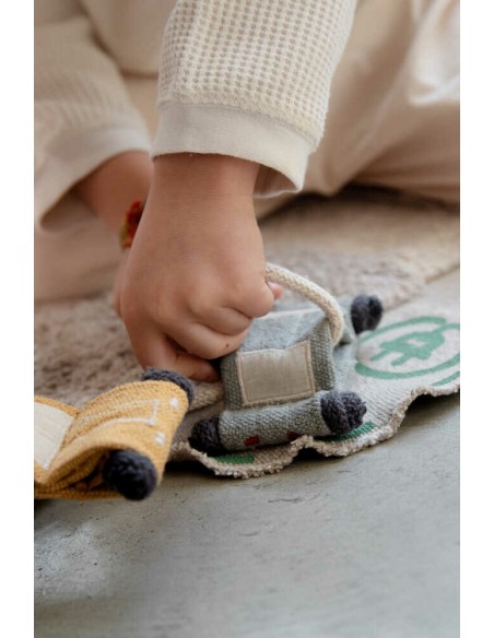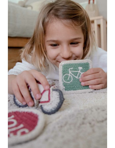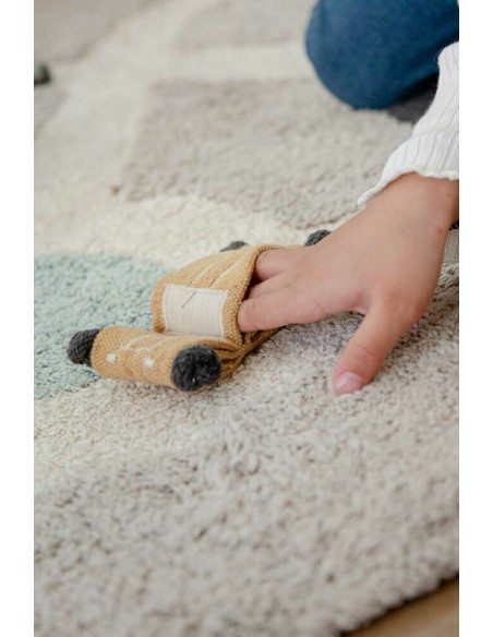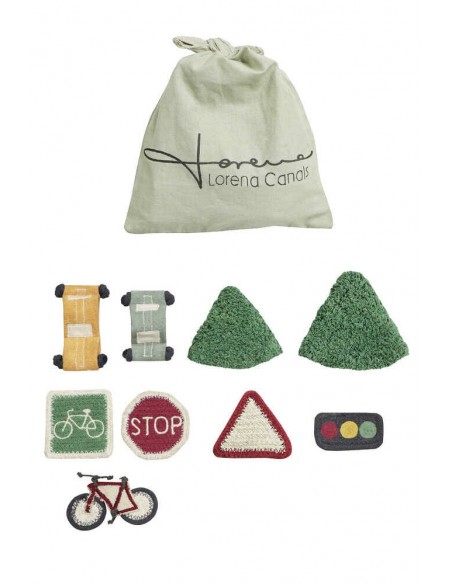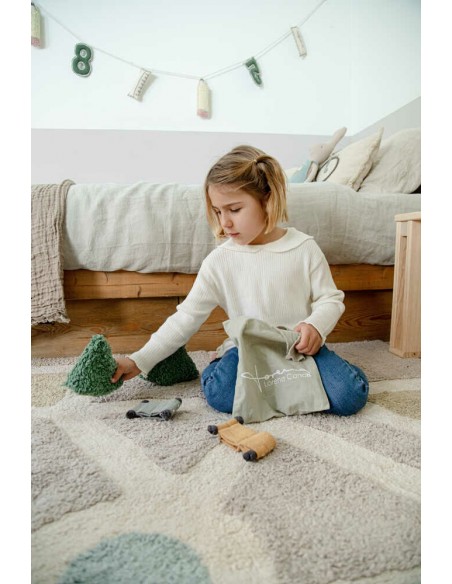 Çocuklar, kendi yön tabelaları, trafik ışıkları, ağaçları, e-arabaları, bisikletleri ve hatta bir EV şarj istasyonu ile tamamlanan bu peluş şehir haritası yıkanabilir oyun halısında hayal güçlerini serbest bırakabilirler! Küçükler, çocuk güvenliğini sağlamak için tamamı doğal pamuktan el yapımı olan ve kolay temizlik için küçük bir pamuklu çanta içinde paketlenmiş 9 adet aksesuarla oynayarak daha yeşil bir gelecek yaratmayı öğrenebilirler.
