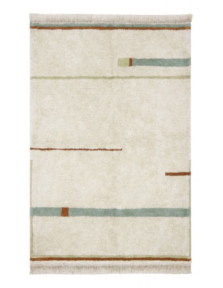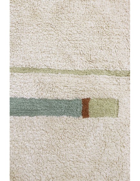Eco-City temalı koleksiyonun diğer parçalarıyla uyumlu ve sade çizgileriyle uygun bir renk paletinde dikdörtgen şeklinde yıkanabilir bir halı için bu temel tasarım çocuk odası, ev alanları ya da zarif genç odaları için çok uygundur.