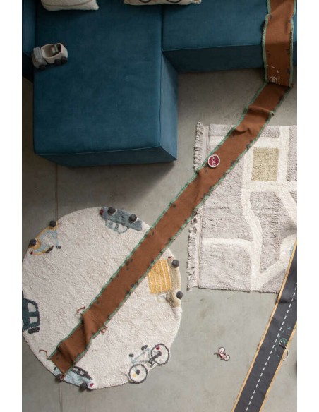 Biraz vroom-vroom eğlencesi zamanı! Ride & Roll oyun seti ile çocuklar, evin etrafında uzun bir kanvas patika yuvarlamaktan ve seti tamamlayan yumuşak oyuncak araba ile sürmekten keyif alacaklar - hayal güçlerini çıldırtmak için 4 metrelik pamuklu kanvas! Baskılı kayalar ve çimen saçaklar gibi ayrıntılara sahip toprak palet tasarımına sahip olan bu model, pamuklu bir elektrik fişine sahip yumuşak bir elektrikli arazi aracı içerir. Çocukların katlanıp uygun bir evrak çantasına katlandığında her yere götürebilecekleri yaratıcı, çevre dostu ve güvenli bir oyuncak.