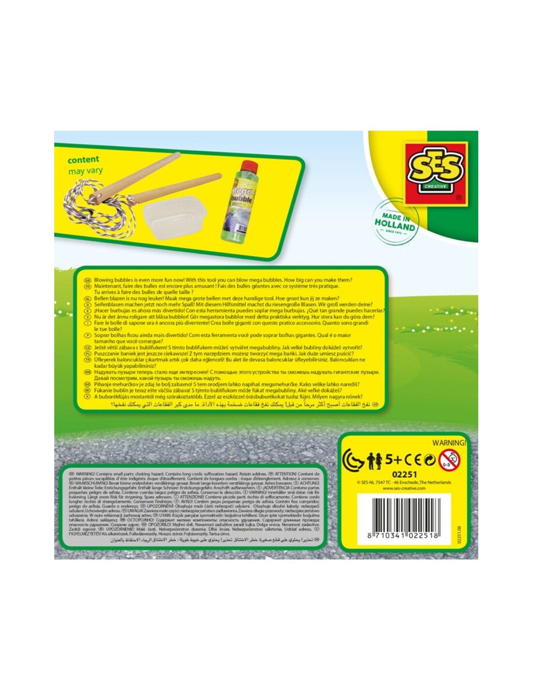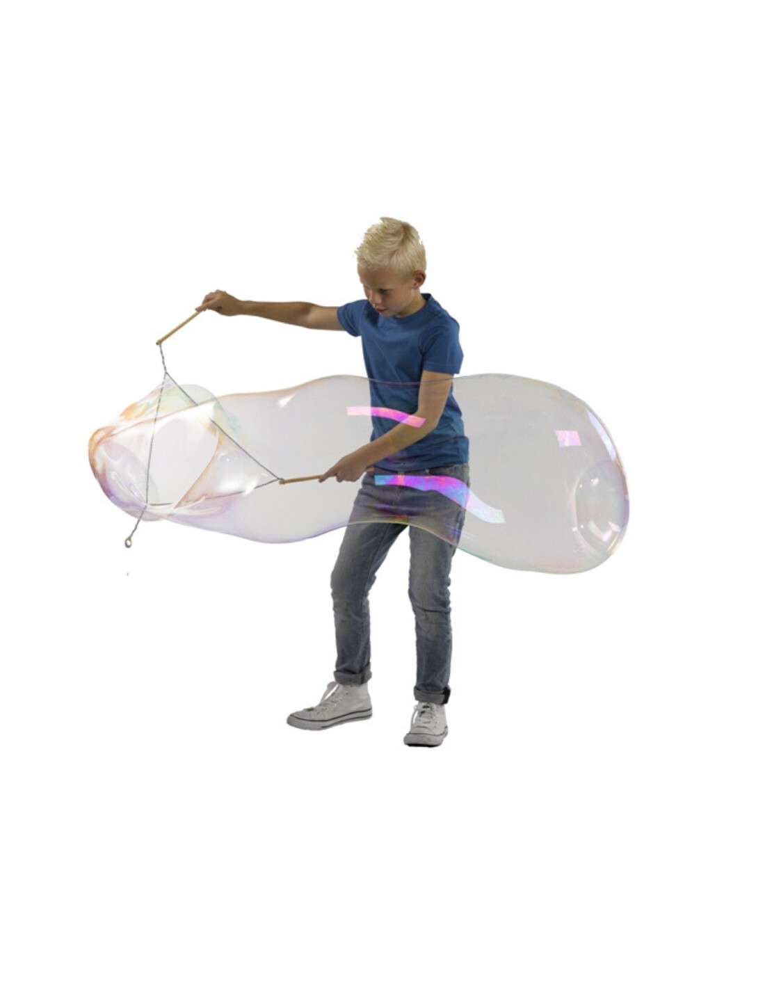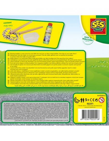 Köpükten baloncuk yapma sizin için artık eskisi gibi olmayacak, kutu içerisinden çıkan el aleti ve çok güçlü sabun solüsyonu (200ml) ile mega boyutta baloncuklar yapabileceksiniz. Bakalım ne kadar büyük baloncuk yapabileceksiniz? Çubukları bir arada tutun, ipleri solüsyonun içine daldırın. Solüsyondan ipleri çıkarın ve çubukları birbirinden dikkatlice ayırın, artık bir baloncuğunuz var. Geriye doğru yavaşça yürüyün ve baloncuğun büyümesini izleyin. Yeterince büyüdükten sonra çubukları birleştirin ve mega baloncuğun havada süzülmesini izleyin. Bakalım ne kadar uzağa gidecek? Ses Creative 40 yıldan uzun bir süredir güvenli ve yaratıcı oyuncaklar geliştirmektedir. Bu ürün Hollanda'da üretilmiştir.