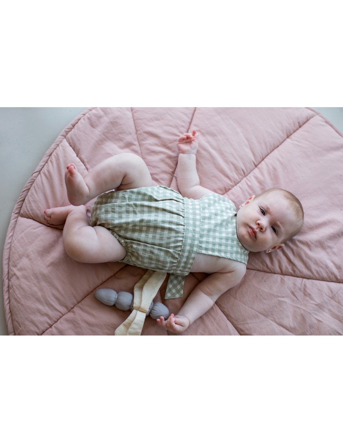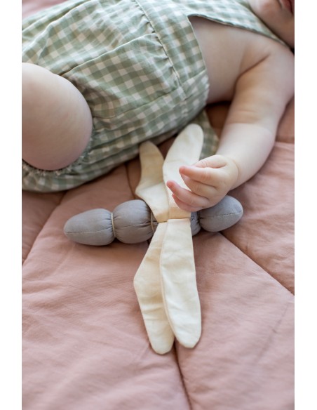 BİLEŞİMİ: %100 organik pamuk; İç dolgu: %100 geri dönüştürülmüş polyester; Aksesuarın içindeki kırışık kağıt ve çıngırak