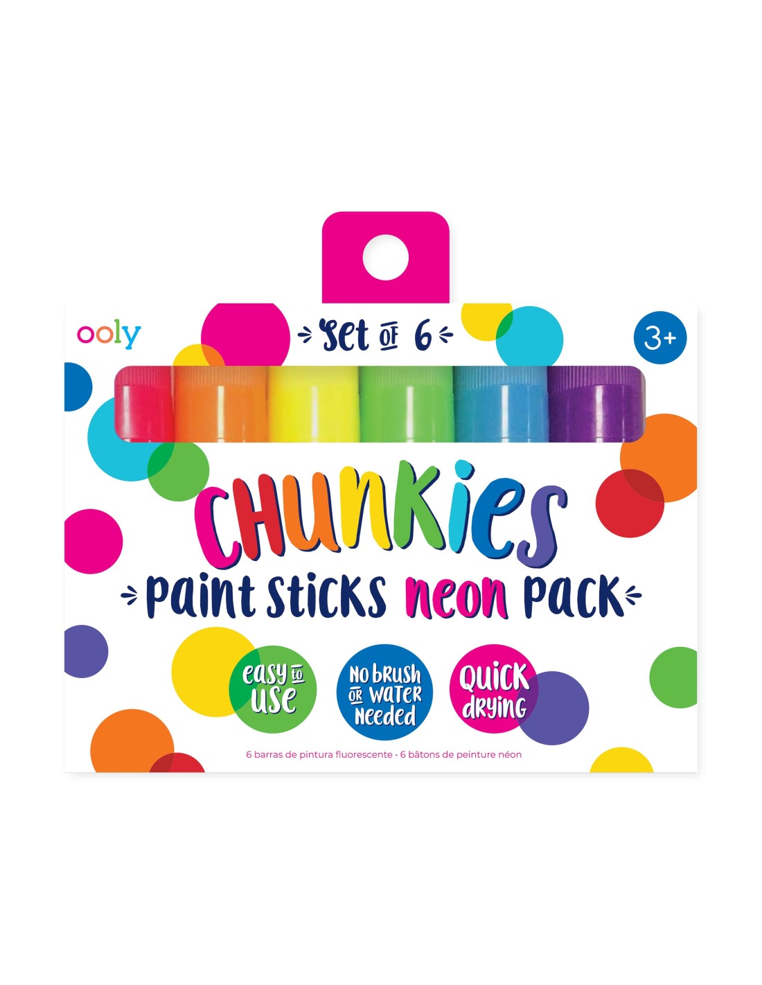 Chunkies boya seti, her biri kalın uçlu plastik bir muhafaza içinde 6 farklı neon renkte boya içerir. Küçük sanatçılar boyama yapmayı sevseler de, ebeveynler ortaya çıkan dağınıklıktan pek de hoşlanmayabilirler. Her biri kalın uçlu plastik bir muhafaza içinde yer alan ve kolay tutuşu imkan sağlayan Chunkies boyalar ise boyayı kağıt üzerinde uygulamaya ve duvar gibi farklı yüzeylerden uzak tutmaya imkan sağlar. Hızlı kuruyan renkler sayesinde istenmeyen lekelerinde önüne geçilir. Bu sayede resimler bittikten sonra neredeyse anında asılmaya hazır hale gelir.