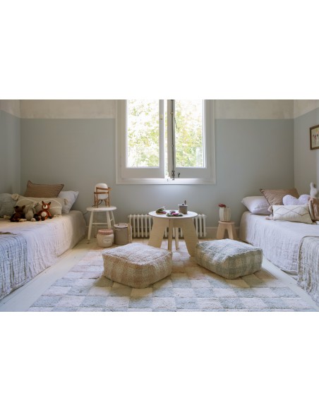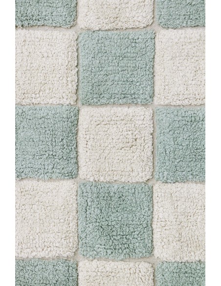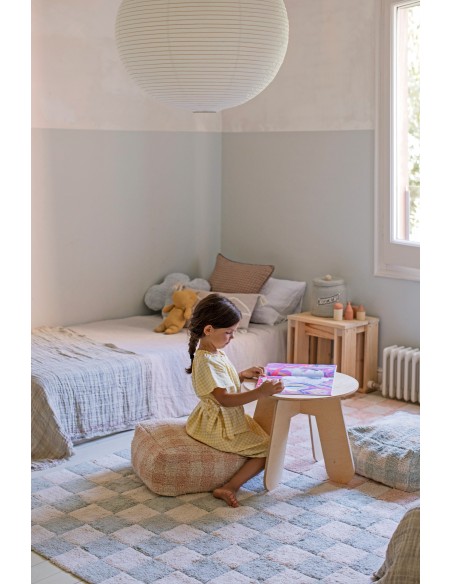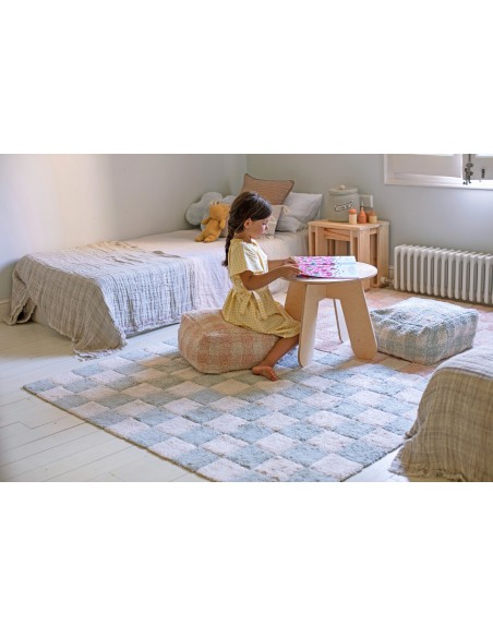 Fayans aşkına! Bu tasarım, bir kilim üzerinde geleneksel dama tahtası mutfak karosu desenini göstermektedir. Yumuşak pembe tonları, çocuk odasına veya çocuk odasına yumuşak bir renk dokunuşu katar. Fayans derzleri, RugCycled® tabanımızı doğal boyasız pamuk ipliğiyle harmanlayarak yapılan, altındaki çıplak tuvali ortaya çıkarır. Mutfak fayansları hiç bu kadar yumuşak olmamıştı!