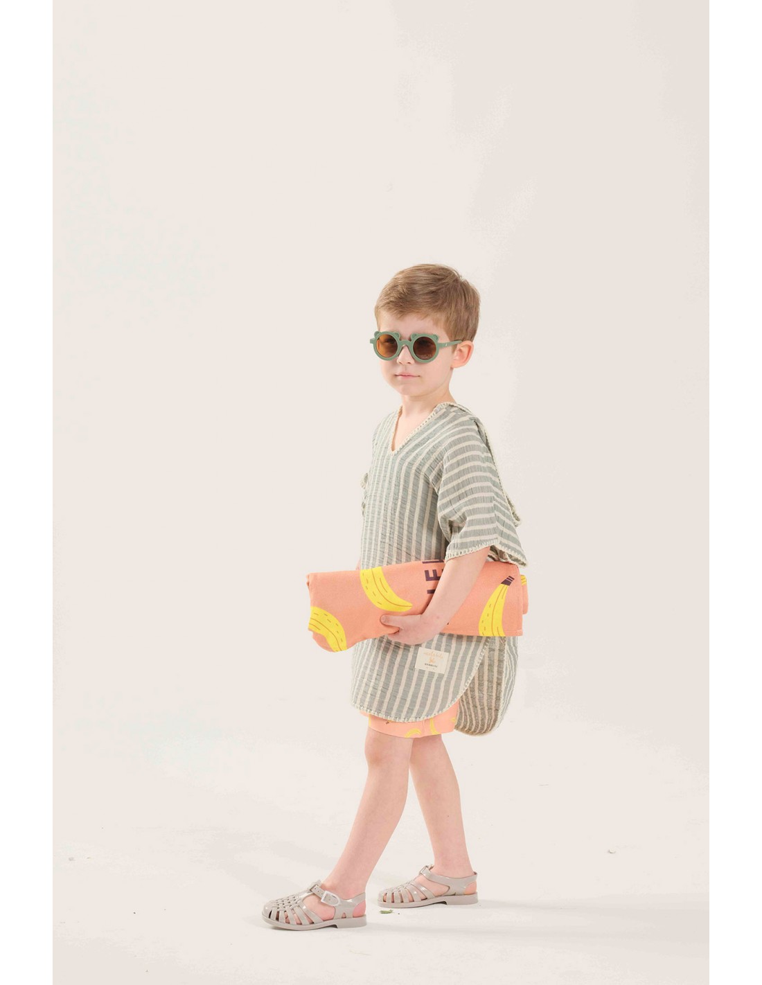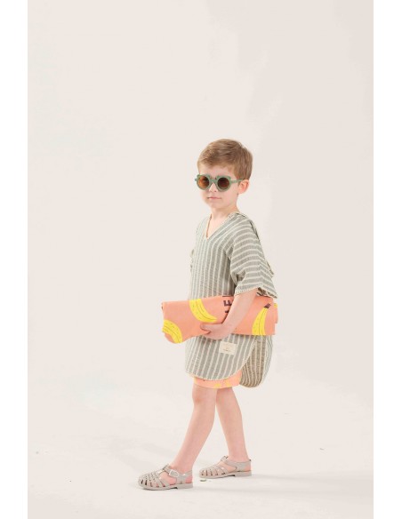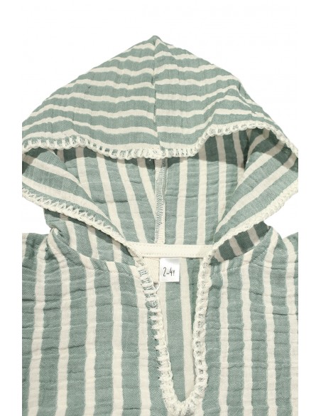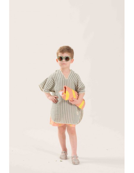 Cıvıl cıvıl renkleriyle plajların gözdesi olmaya aday müslin pançoları denizden ya da havuzdan çıktıktan sonra kullanabilirsiniz. Pamuklu yapısı suyu hızla emer ve rüzgardan minikleri korur. Kapüşonu sayesinde saçlar uzun süre ıslak kalmaz hızla suyu emer aynı zamanda yakıcı güneşten de miniklerin başlarını korur.