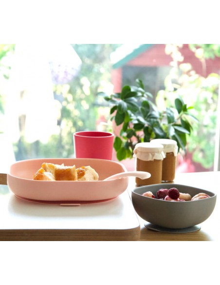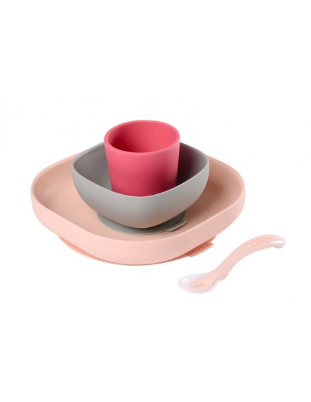 Silikon beslenme seti; Tabak, vantuzlu kase, bardak ve silikon kaşıktan (2 yaş) oluşmaktadır.