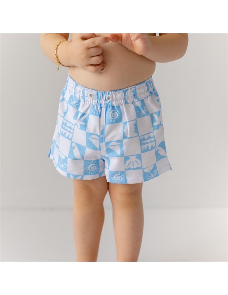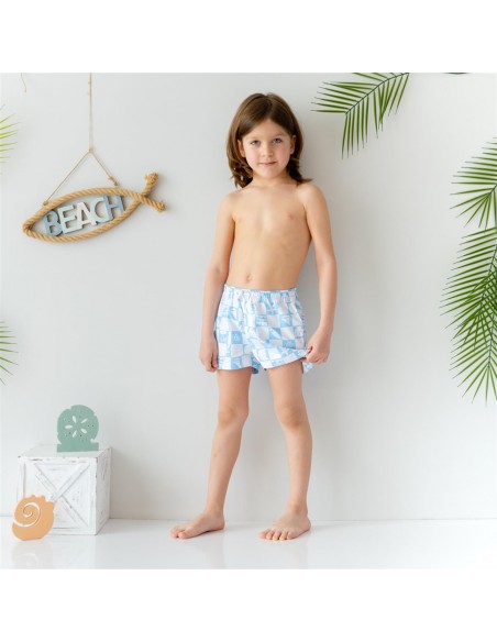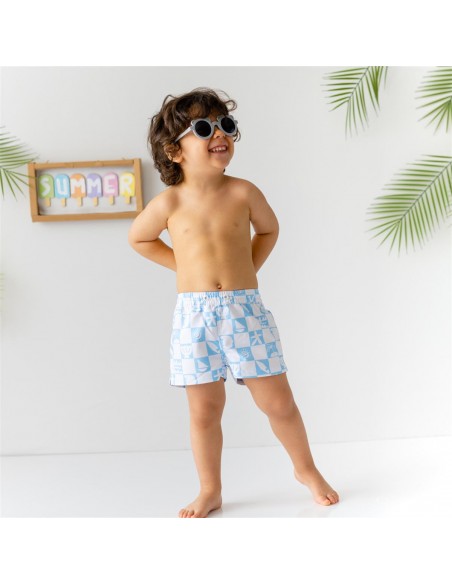 Mama Yoyo - Erkek Çocuk Şort Mayo Mavi Kareli