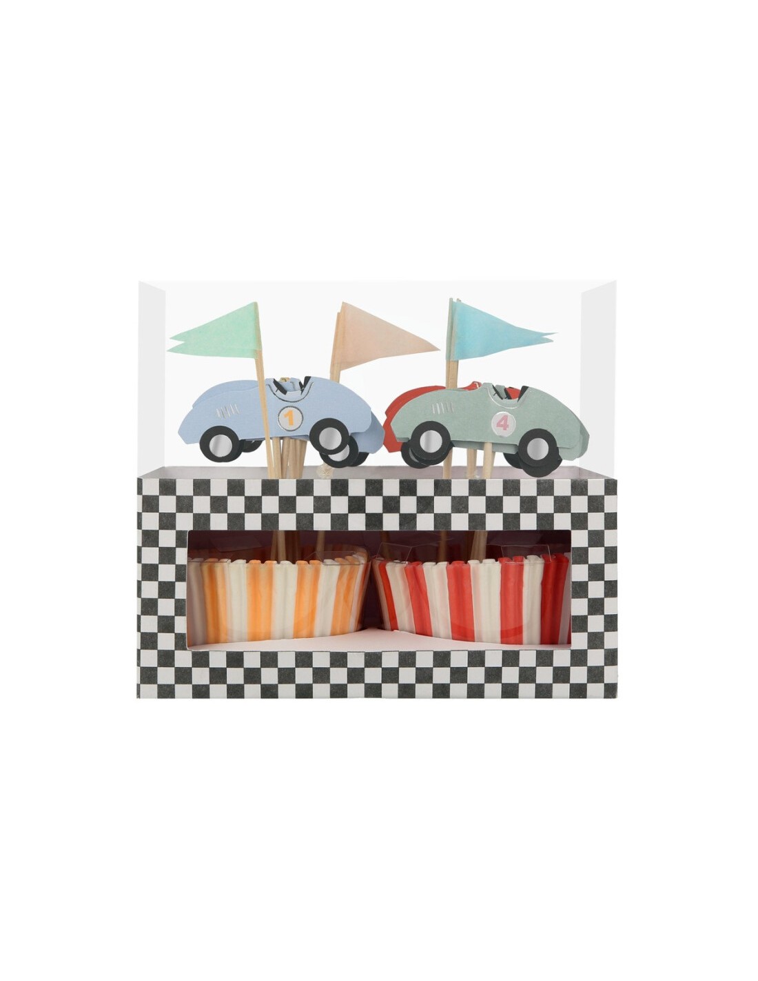 Toppers, kağıt arabalara ve kağıt bayraklara sahiptir.