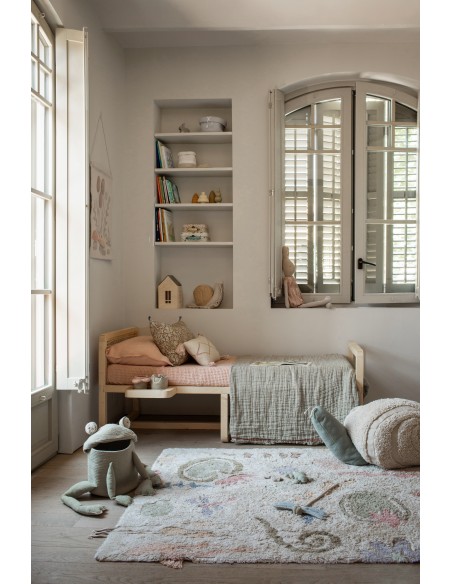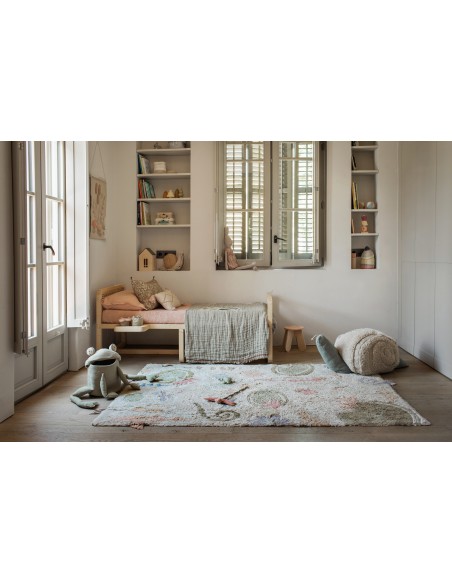 Bir kilim üzerinde çiçek açmanın ve vızıltıların büyülü dünyası! Evcil kurbağa ve salyangoz da dahil olmak üzere doğadan bir parçayı içeriye taşıyan bu pastel renkli yıkanabilir pamuklu halıyla küçükler bir gölet fantezi dünyasına adım atabilir! Çocuklar bunları halının baskısıyla etkileşime geçmek ve hayal gücüyle hayata geçirmek için kullanabilir....