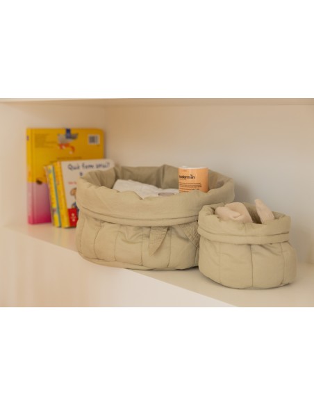 Organik pamuklu poplinden yapılan pratik iki yumuşak sepet seti, bebek ürünlerinizi elinizin altında tutmak için mükemmeldir. Üç renk seçeneği bulunan sepetler, GRS sertifikalı polyester dolgu ile yumuşak kapitone edilmiştir. Büyük boy sepet, uyumlu renkte bir bambu yaprağı ile dekore edilmiştir.