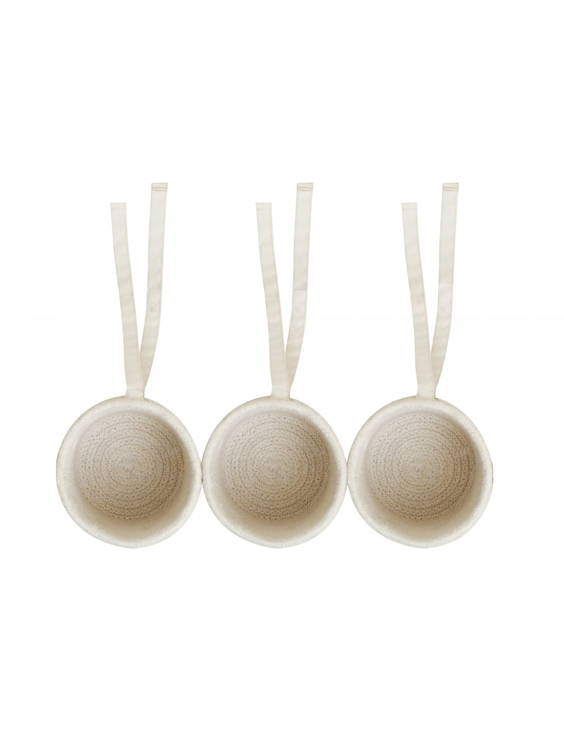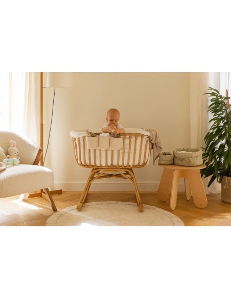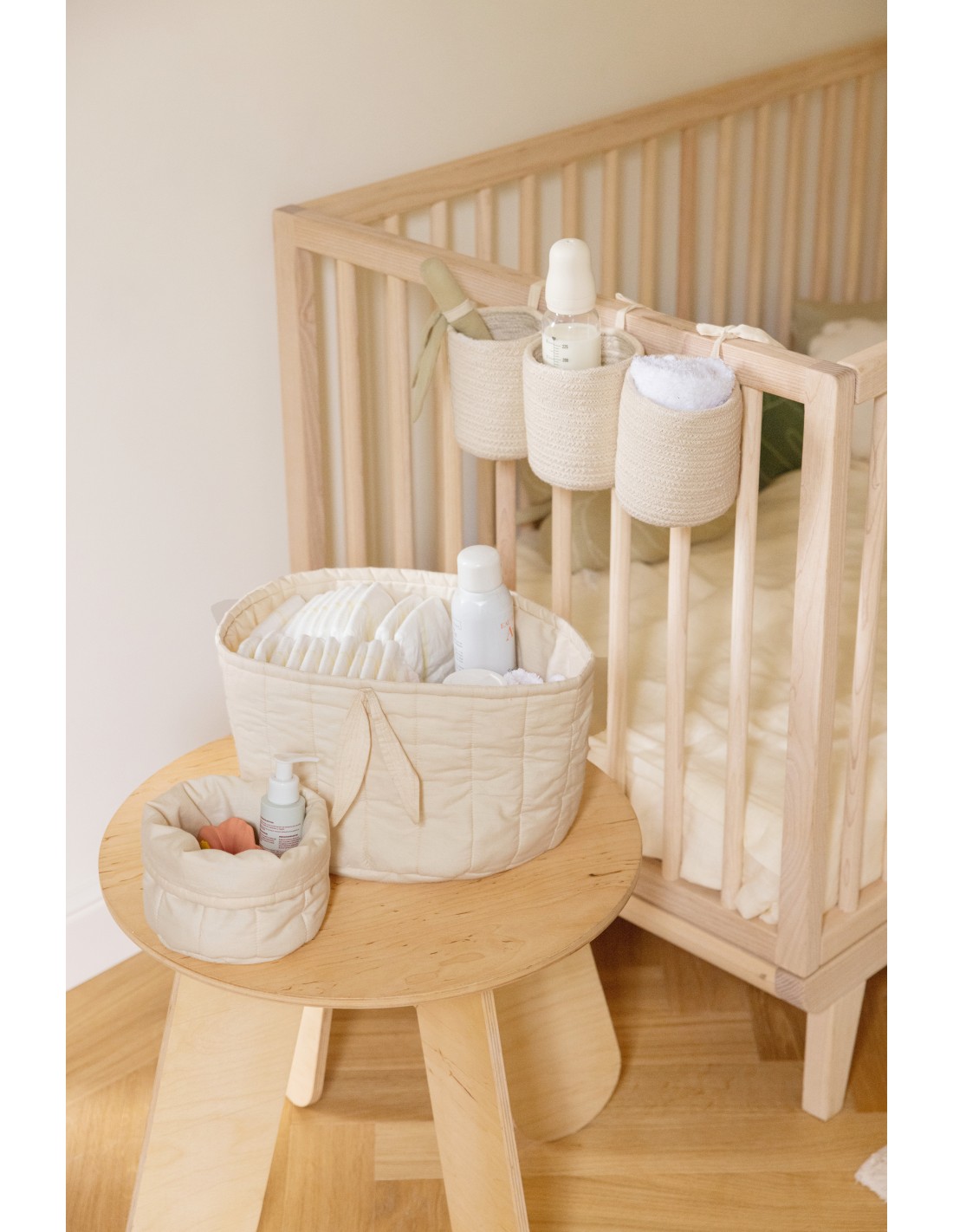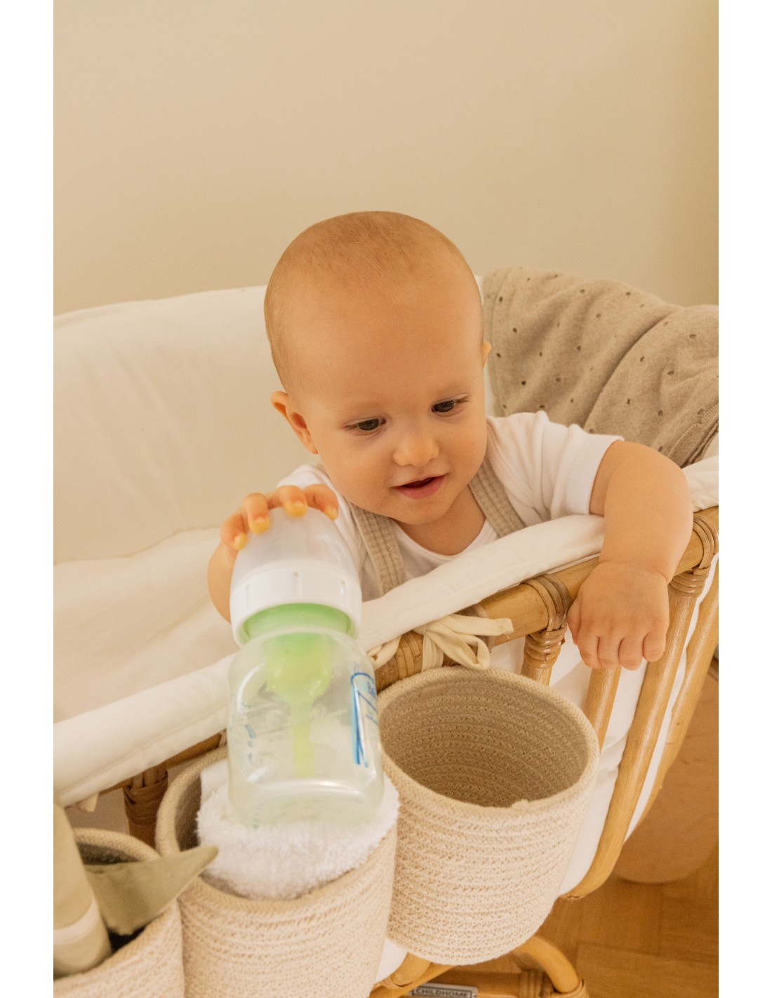 Pamukla kaplı, (Sürdürülebilir) elyaf örgülerden yapılmış, birbirine dikili üç mini silindir asılabilir sepetten oluşmaktadır. Sepet; bebeğinizin biberonlarını, Diş kaşıyıcılarını ve en sevdiği çıngıraklı oyuncakları koyabilmek için beşiğin dış kısmına takılabilecek şekilde tasarlanmıştır. Yumuşak pamuklu kumaş iplerle beşiğe kolayca takılır.