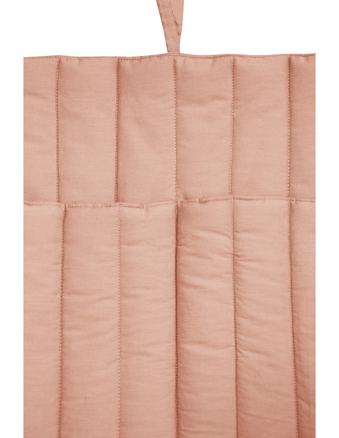 Bambu kamışlarını çağrıştıran dikey çizgili, yumuşak organik pamuklu poplinden yapılmış pratik beşik cep askısıdır. Saklama için iki büyük cebe ve beşiğe bağlanacak ipleri mevcuttur. Cep askısı, GRS sertifikalı (sürdürülebilir) polyfill ile yumuşak bir şekilde doldurulmuştur ve uyumlu renkte işlemeli bir bambu yaprağı ile dekore edilmiştir.