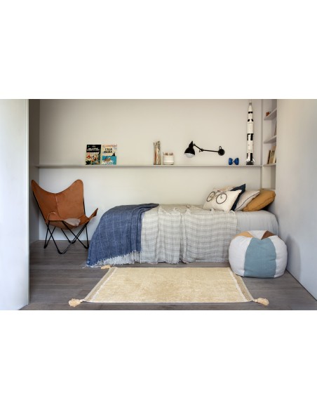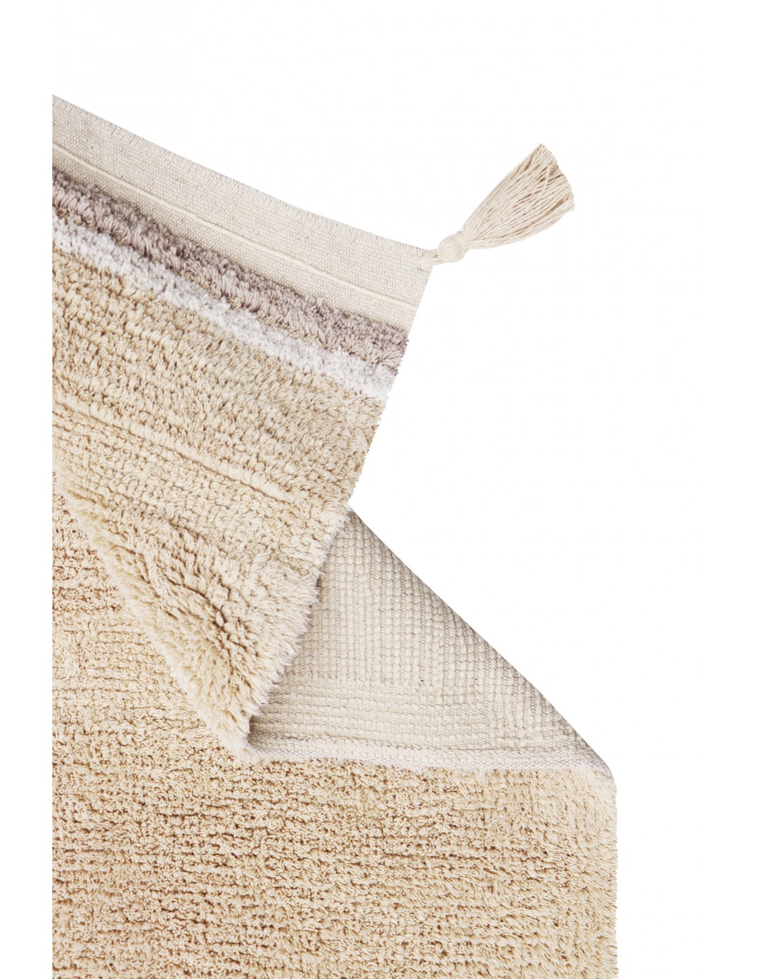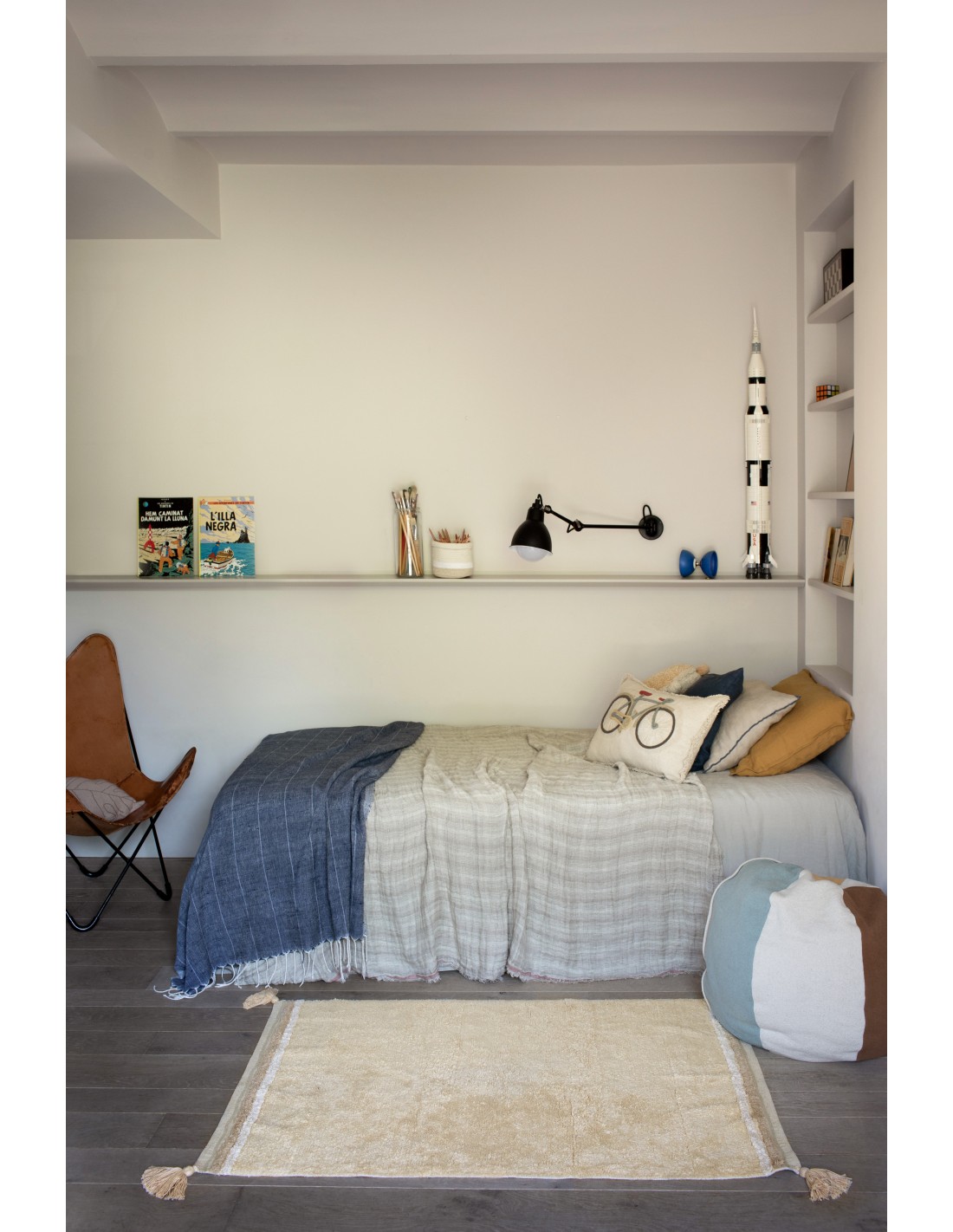 Bohem bir hava katmak için zarif, sade bir tarza ve eğlenceli püsküllere sahip, tamamen yumuşak ve kabarık bir halı. Bu tasarım, üretimimizi sıfır atık haline getirdiğimiz RugCycled® koleksiyonumuzu genişletiyor. Tuhaf bir çocuk odası için Fantasy Garden koleksiyonumuzun farklı parçalarıyla birleştirin veya nötr tozlu renkleri ile her mekana kolayca uyum sağlayan sade ev dekoru için tek başına kullanın.