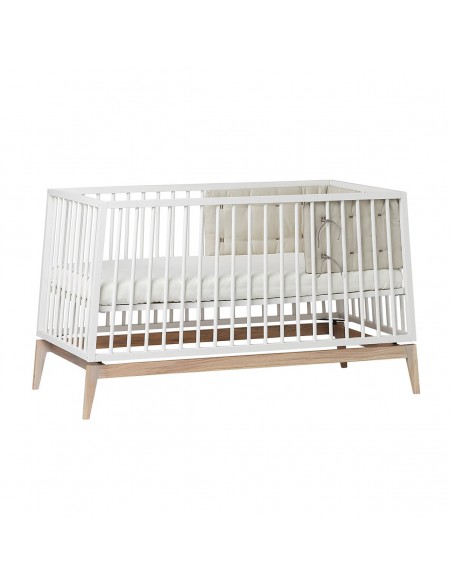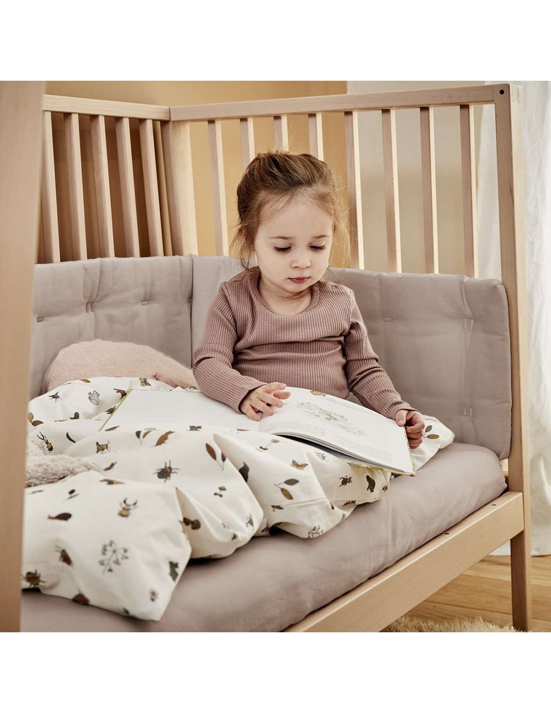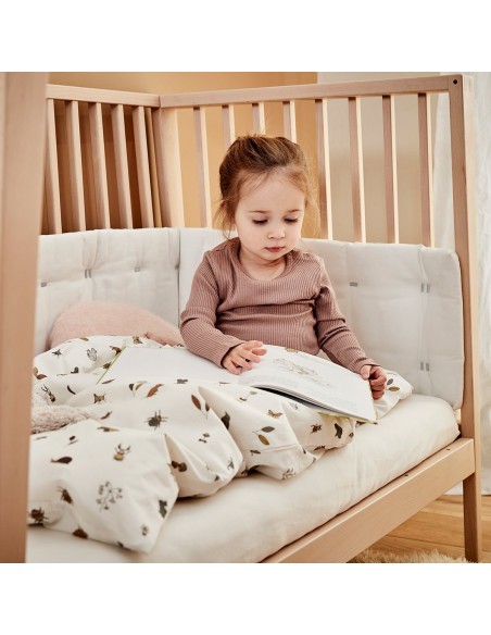 Leander Linea™ veya Leander Luna™ bebek karyolanıza Leander bebek karyolası koruyucusu ile daha yumuşak ve daha sıcak bir his verin. Yumuşak pamuklu malzeme, çocuğunuzu küçük çarpmalardan, soğuk hava akımlarından, dış gürültü ve uyaranlardan korur. Çocuğunuzun daha kolay uykuya dalmasına yardımcı olacak rahatlatıcı bir atmosfer yaratır.