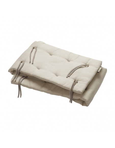 Güçlü kanvas kumaş organik pamuktan yapılmıştır ve havadar polar dolgu sayesinde yatak nefes alabilir. Optimum uyku kalitesini ve karyoladaki sıcaklığın doğal bir şekilde düzenlenmesini sağlamak için koruyucu, sabit bir hava akışı sağladığından karyolanın sadece yarısını kaplar.