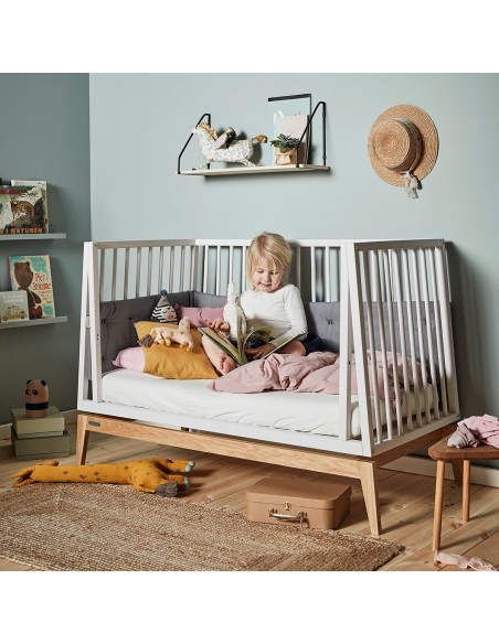 Leander Linea™ veya Leander Luna™ bebek karyolanıza Leander bebek karyolası koruyucusu ile daha yumuşak ve daha sıcak bir his verin. Yumuşak pamuklu malzeme, çocuğunuzu küçük çarpmalardan, soğuk hava akımlarından, dış gürültü ve uyaranlardan korur. Çocuğunuzun daha kolay uykuya dalmasına yardımcı olacak rahatlatıcı bir atmosfer yaratır.