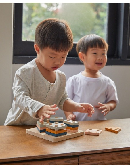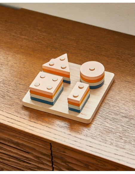 4 renkli geometrik şekil seti, her şeklin ortasındaki delik sayısına göre sıralanabilir.