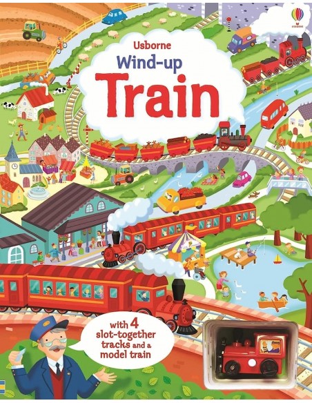 Bu büyük ve sağlam karton kitap, rüzgâr kurmalı buharlı tren oyuncağıyla birlikte geliyor! Treni kurup her sayfadaki gömülü rayın üzerinde çalıştırın ve trenin kırsal manzaralar arasında ilerlemesini izleyin. Kitaptaki dört ayrı ray parçası çıkarılabilir ve birleştiğinde dev bir tren hattı oluşturur. Çocuklar hem okumaktan hem de oyundan büyük keyif alacak!