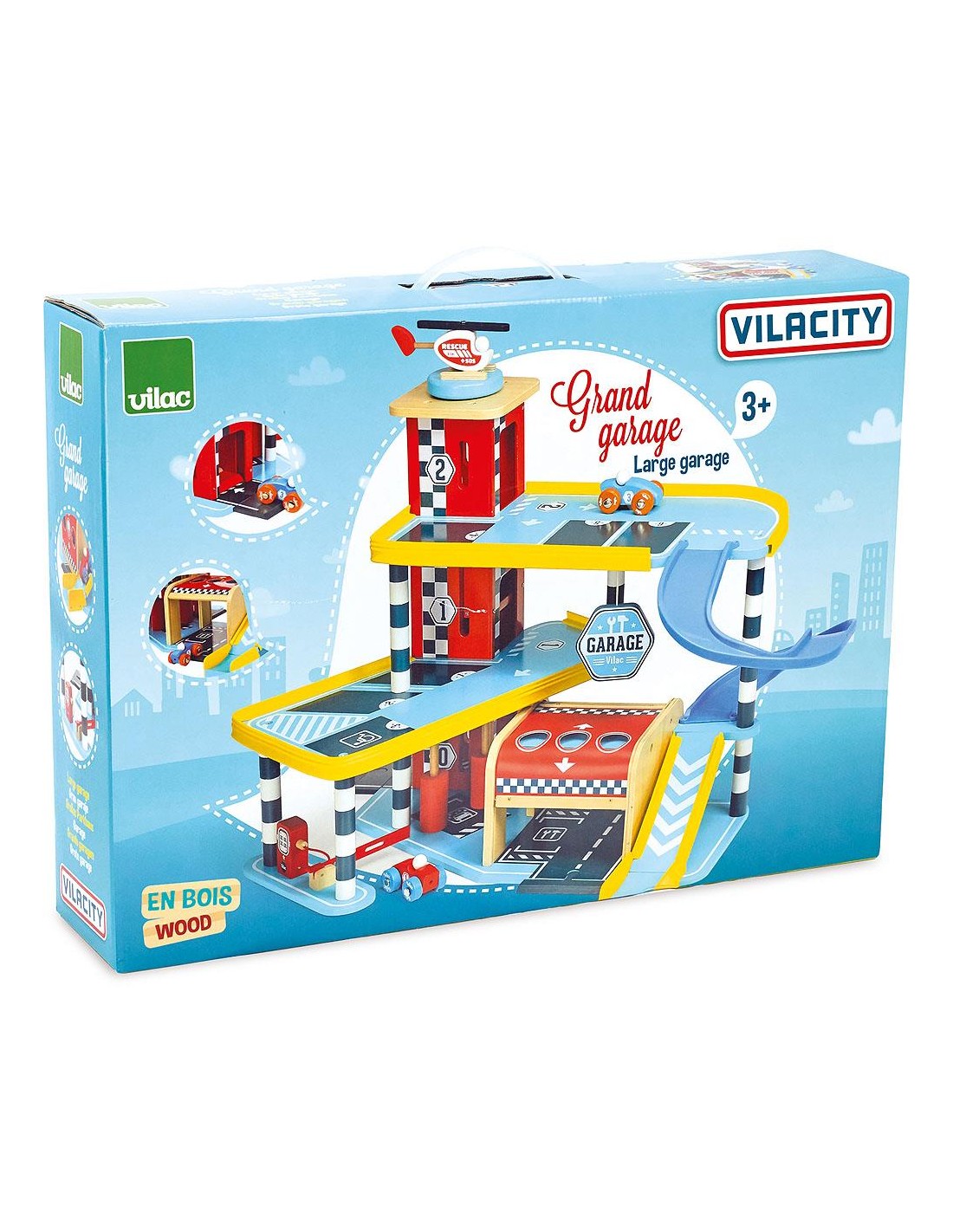 Yeni maceralara hazır mısınız? Vilacity serisinden büyük ahşap garajımızı keşfedin. İçerdiği 2 araba ve 1 helikopter ile saatlerce oynamaya hazır. Bu garajda aracınızın bakımını ve onarımını yapmak için ihtiyacınız olan her şey var!