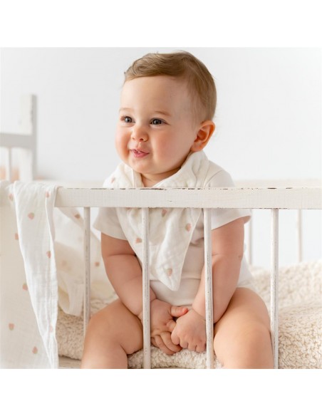 %100 organik pamuktan üretilmiştir. Çift katlı karesiz müslinden üretilmiştir. 2 kademeli çıtçıtı vardır. Yenidoğandan 1 yaşa kadar uyumludur.