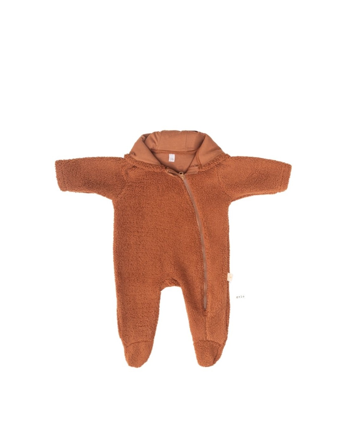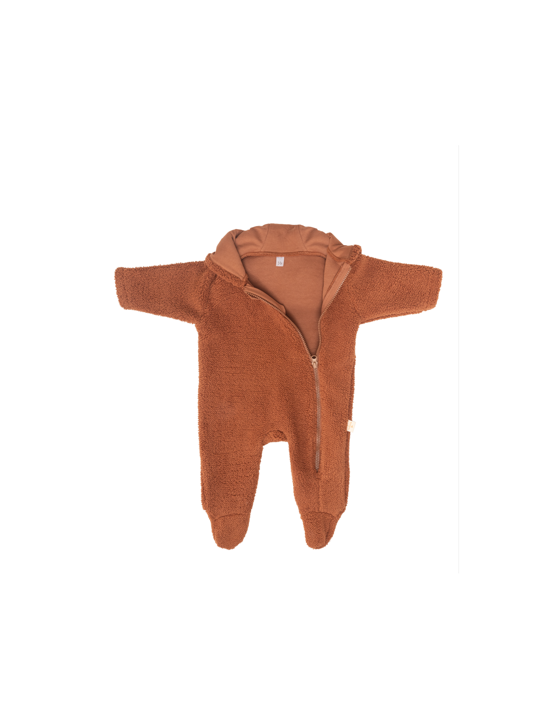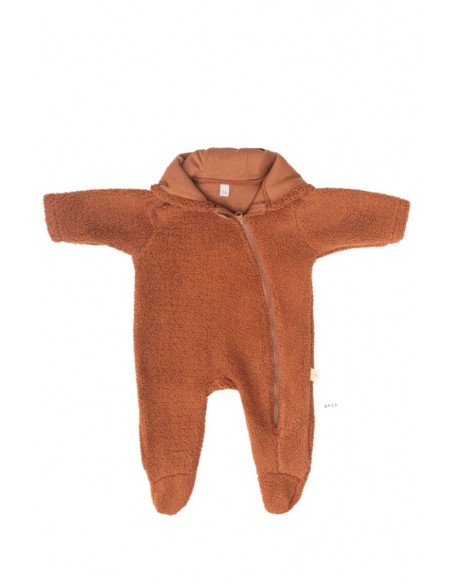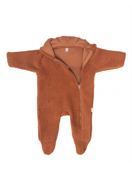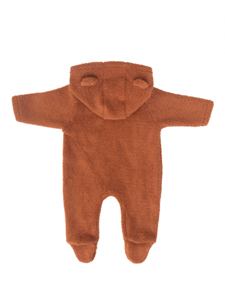 Miela Kids - Ayı Kulaklı Kapüşonlu Peluş Tulum Kahve