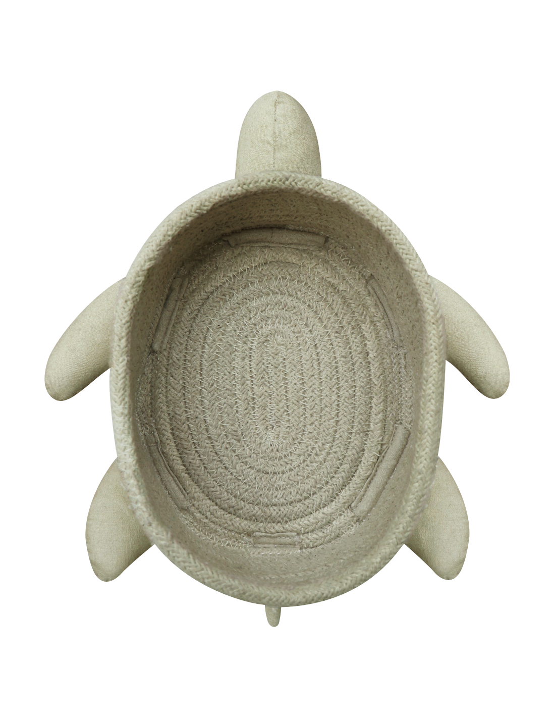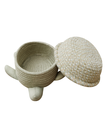 Bebek Kaplumbağanın okyanus kıyısına ulaşmasına yardım edin! Pamuk renklerimizle karıştırılmış geri dönüştürülmüş PET şişe ipliklerinden oluşan örgü kordonlarla el yapımı olarak üretilen Bebek Kaplumbağa sepetinin minik bir kafası ve patileri zeytin yeşili organik pamuktan yapılmıştır. Kapağı açın ve küçük hazinelerinizi saklayın!
