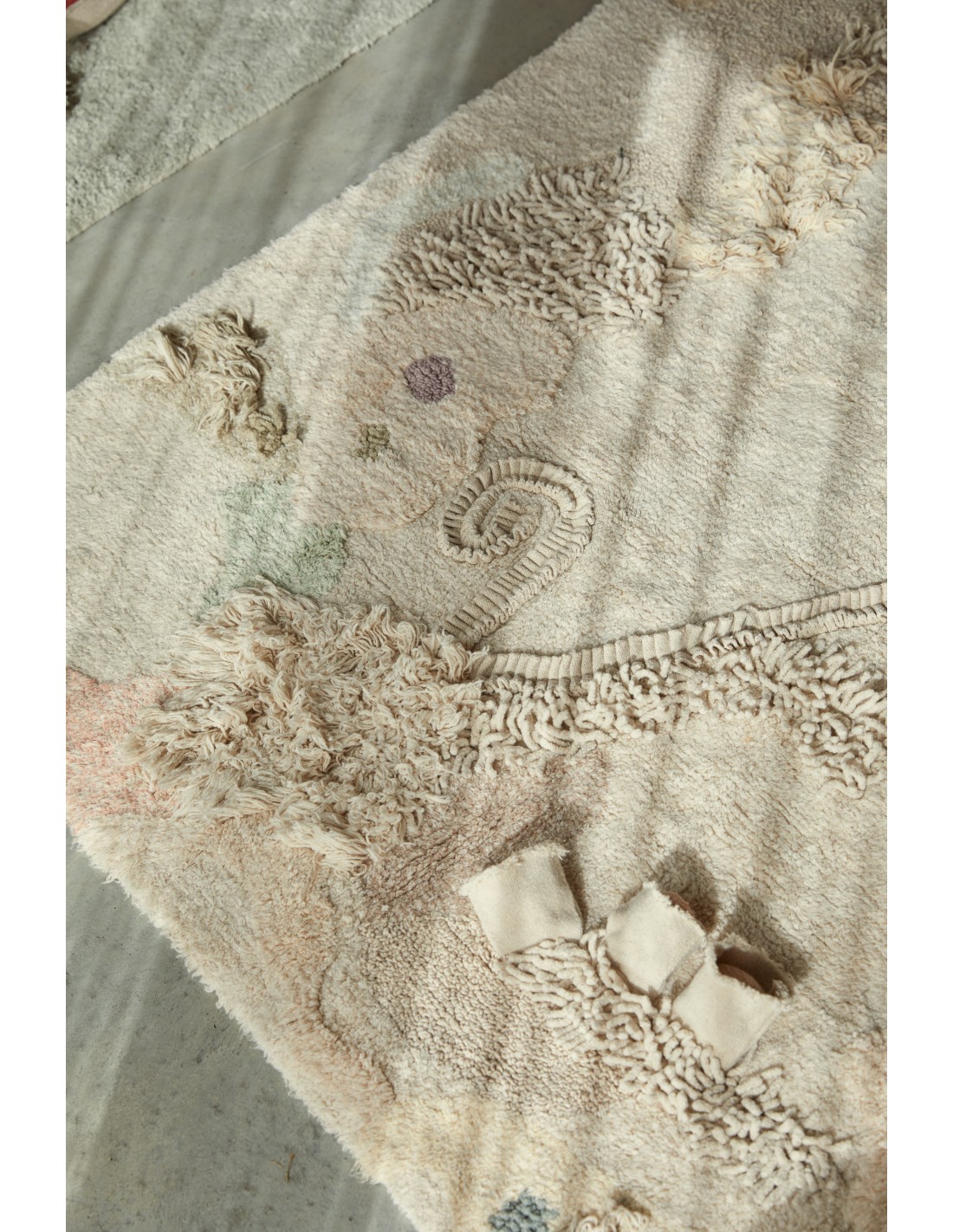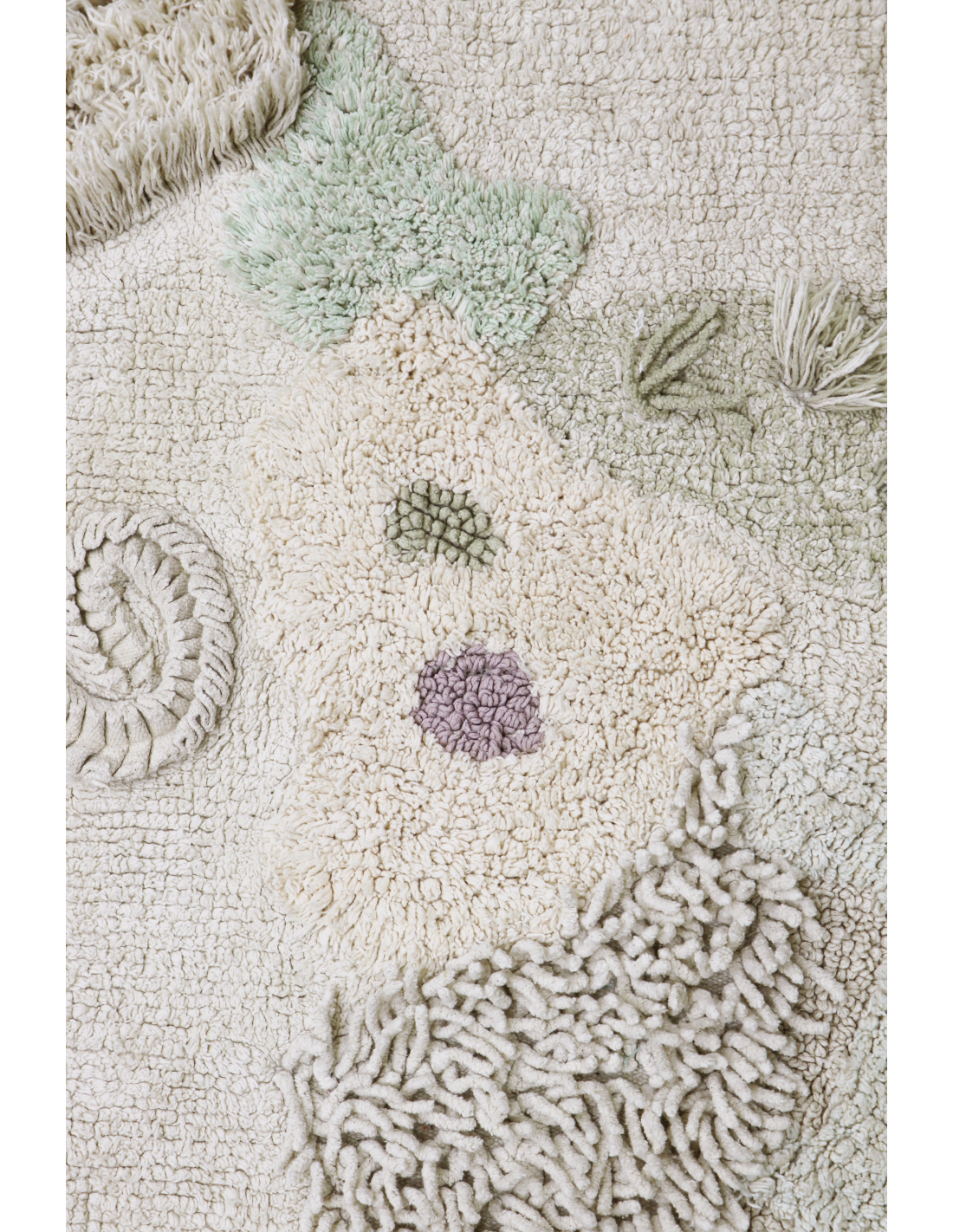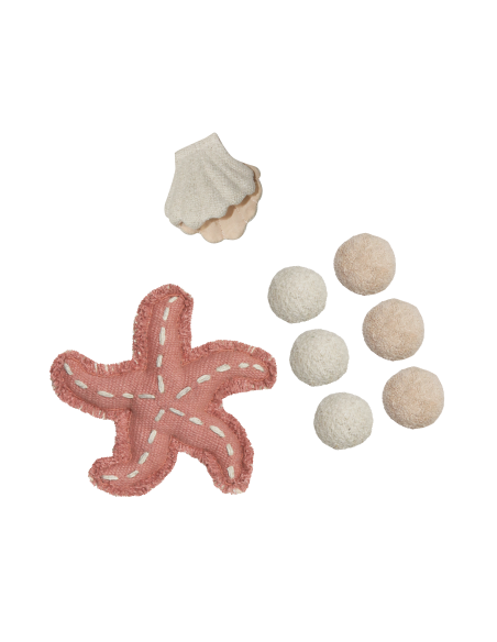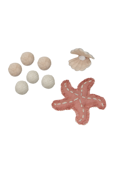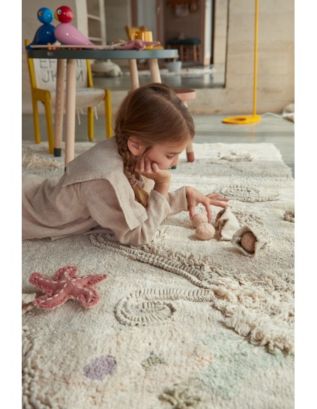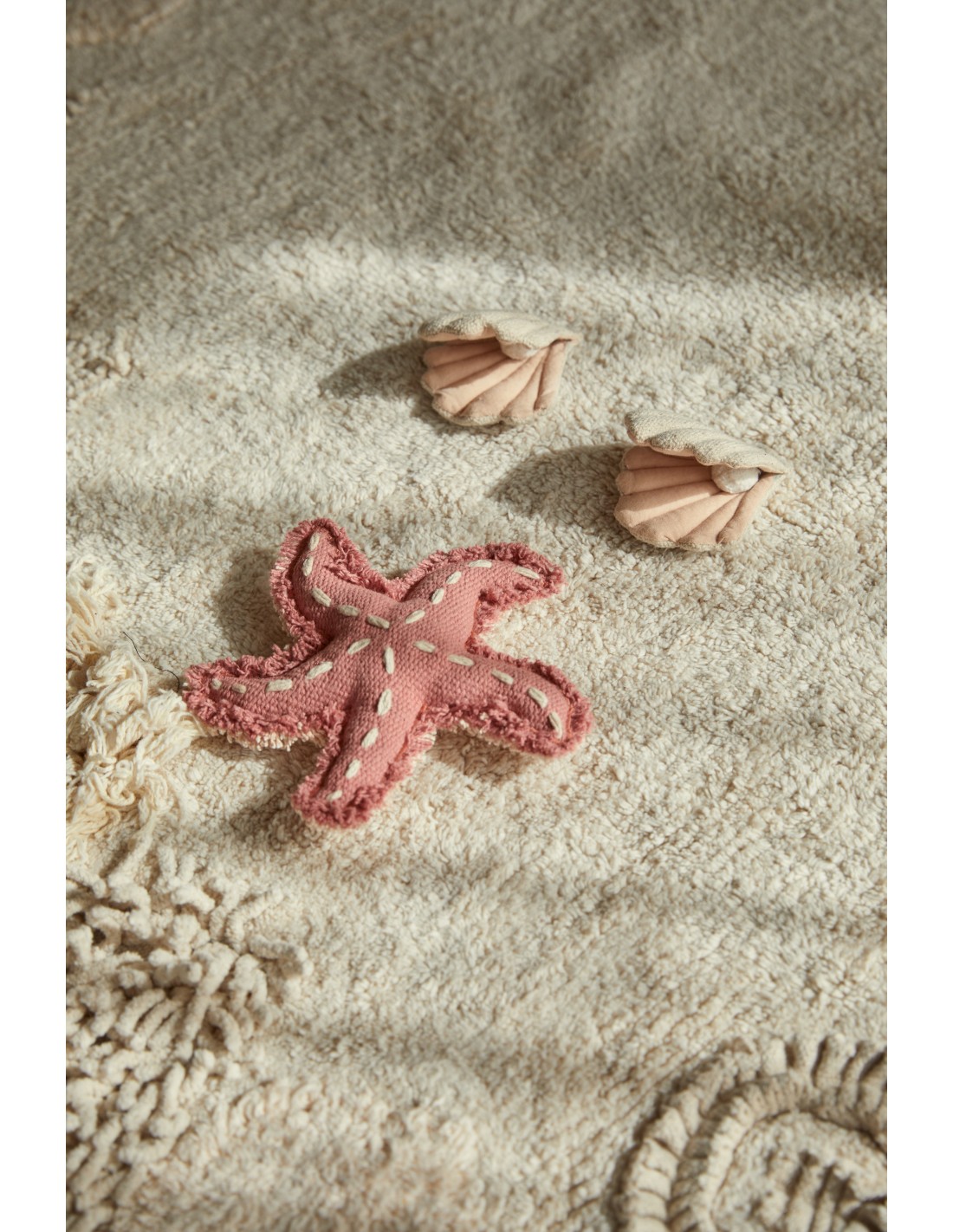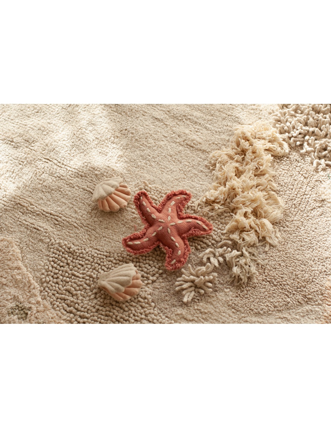 Çocuğunuzun odasını okyanus tabanına dönüştürün ve içini sihirli okyanus yaratıklarıyla doldurun! Deniz Yatağı Halısı, denizyıldızlarının ve incileri gizleyen kabukların yaşadığı sihirli bir denizaltı manzarasından ilham alan farklı unsurlara sahip, rüya gibi bir oyun halısıdır. Yumuşak, doğal ve pastel renk tonlarında okyanus tabanı, küçüklerinizin hayal gücünü harekete geçirecek farklı dokulara sahip alanlarla temsil edilir. Halı, oynayabileceğiniz bir dizi aksesuarla birlikte gelir: 1 deniz kabuğu + 1 deniz yıldızı + 6 ponpon, tamamı logolu baskılı pamuklu çanta.