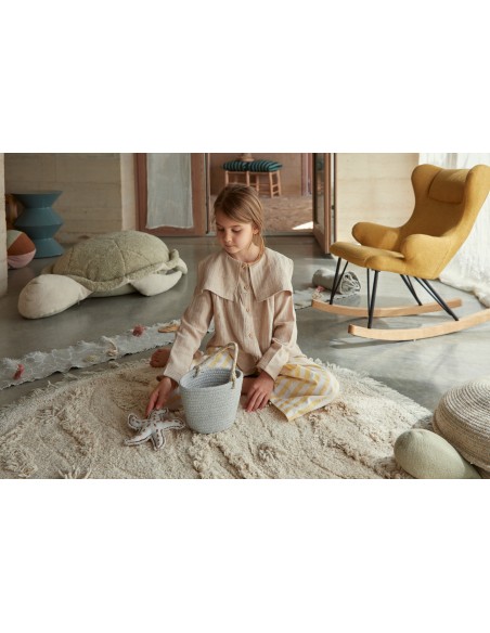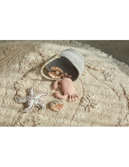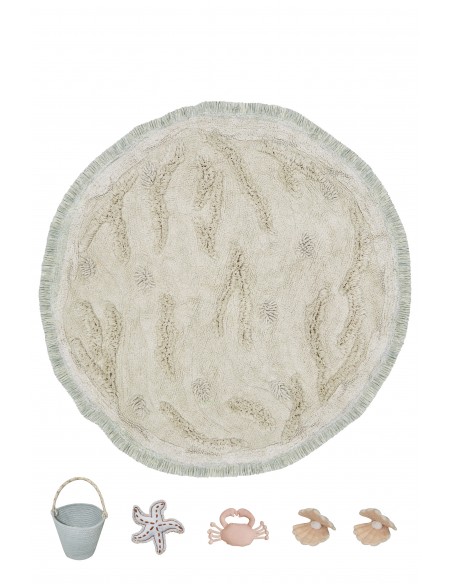 Kısa ve orta hav yüksekliklerinin benzersiz bir desenle karışımıyla Ada halısı, kumsalın yumuşak kumullarını akla getiriyor. Oynamak için dört sevimli tekstil oyuncağı içerir: bir plaj kovası, bir deniz yıldızı, bir yengeç ve iki deniz kabuğu. Çocuğunuzun hayal gücünün yükselişini, kumdan kaleler yapmasını, deniz kabuklarını toplamasını ve adayı keşfetmesini izleyin!