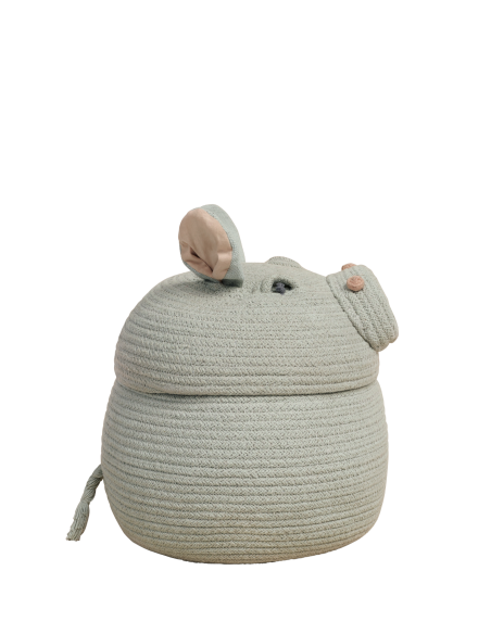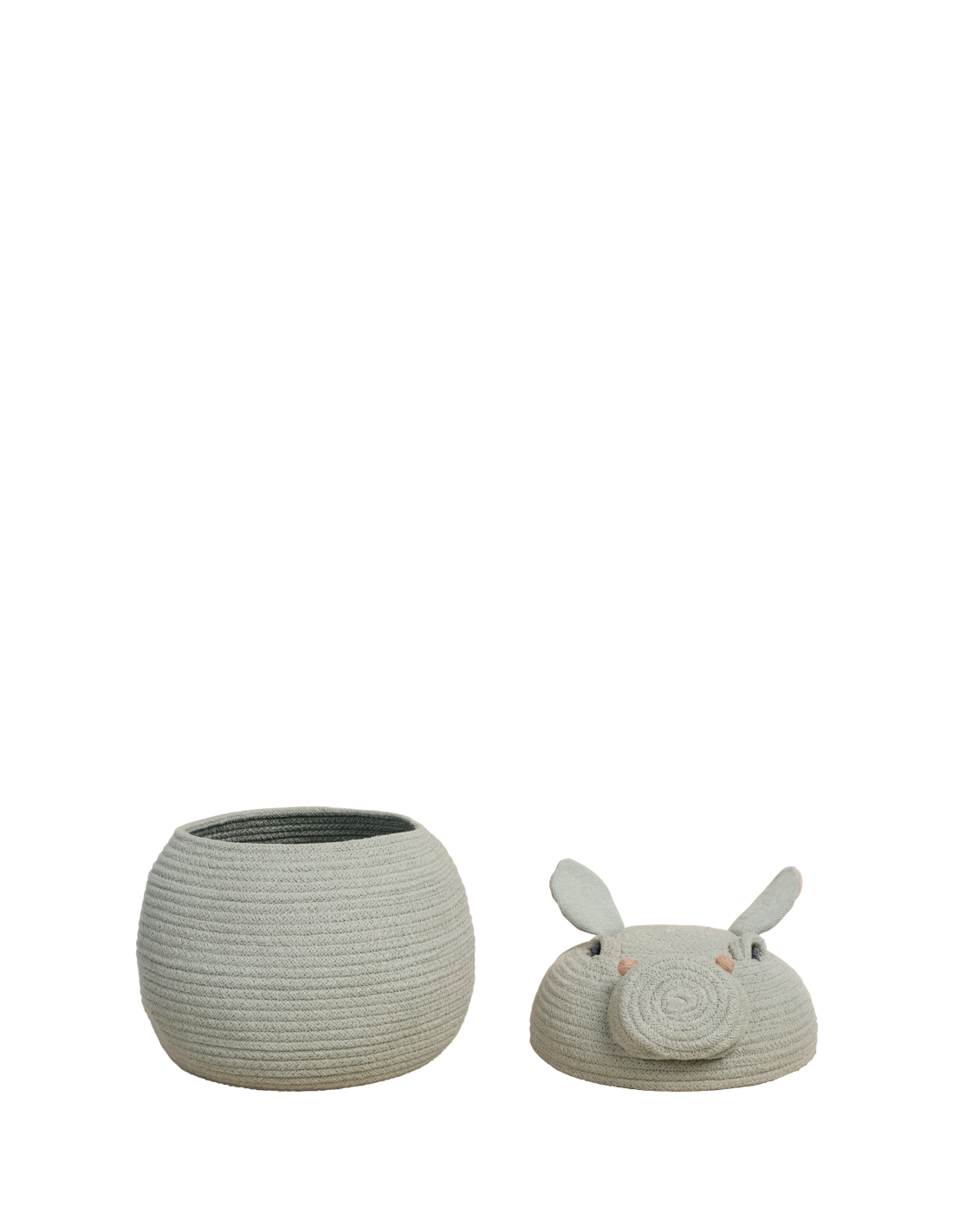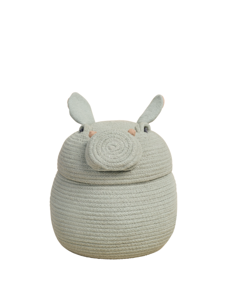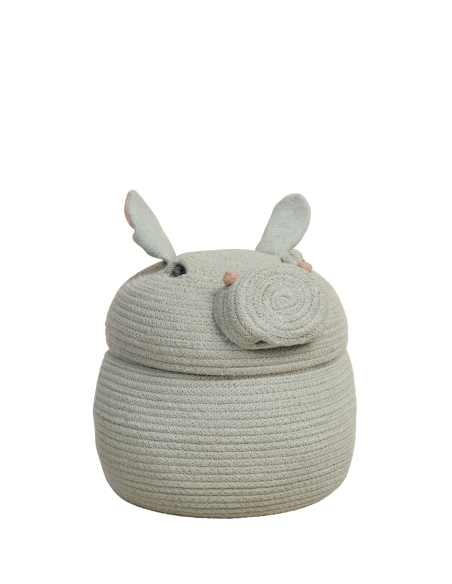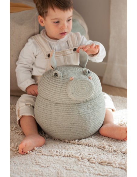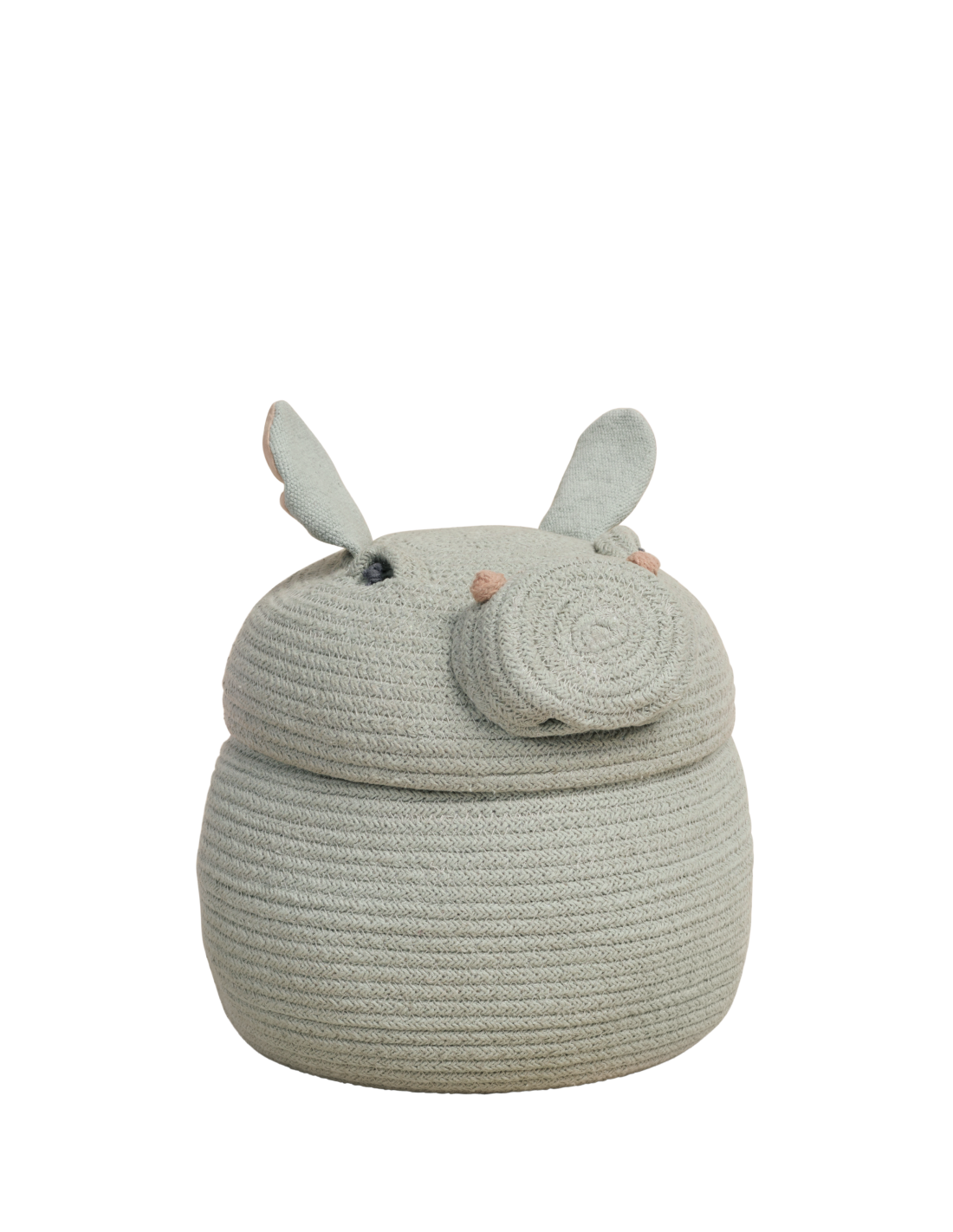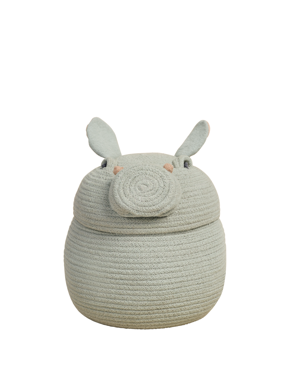 Bir su aygırı kadar mutlu! Hafif yuvarlak şekilli bir kapağa sahip olan Henry the Hippo sepeti, Blue Sage pamuğumuzla karıştırılmış geri dönüştürülmüş PET şişelerden elde edilen elyaflardan yapılmış örgülü bir kordon kullanılarak el yapımıdır. Uyumlu renkli kanvas kulakları ve düğümlü pembe burun delikleri ile su aygırı arkadaşınız küçük hazinelerinizi güvende tutacak.