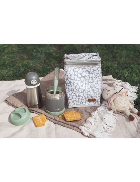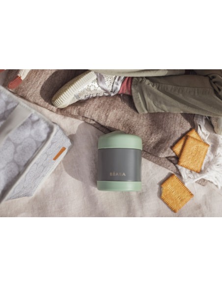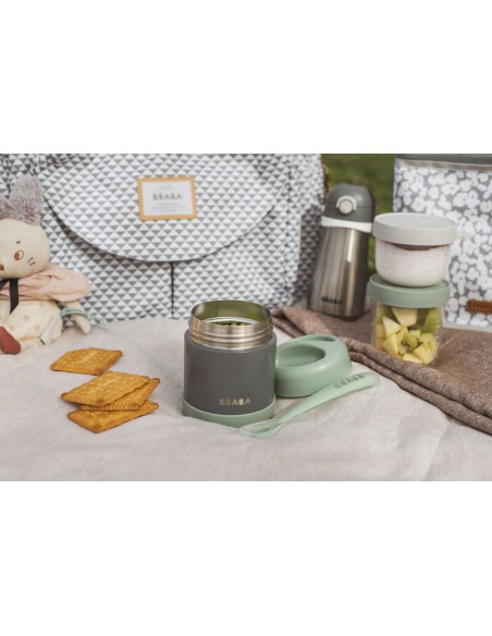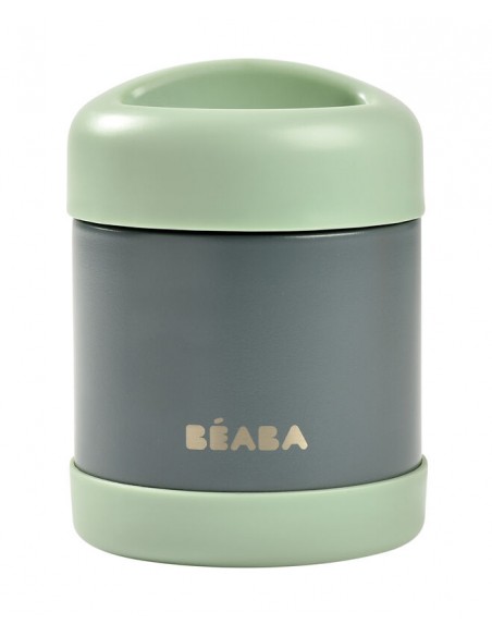 Beaba - Paslanmaz Çelik Yiyecek Termosu 300ml Mineral Grey / Sage Green
