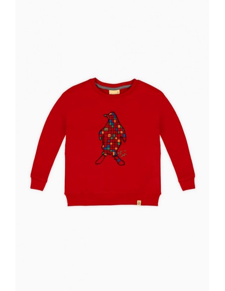 Çocuk Bisiklet Yaka Baskılı Sweatshirt - Kırmızı
