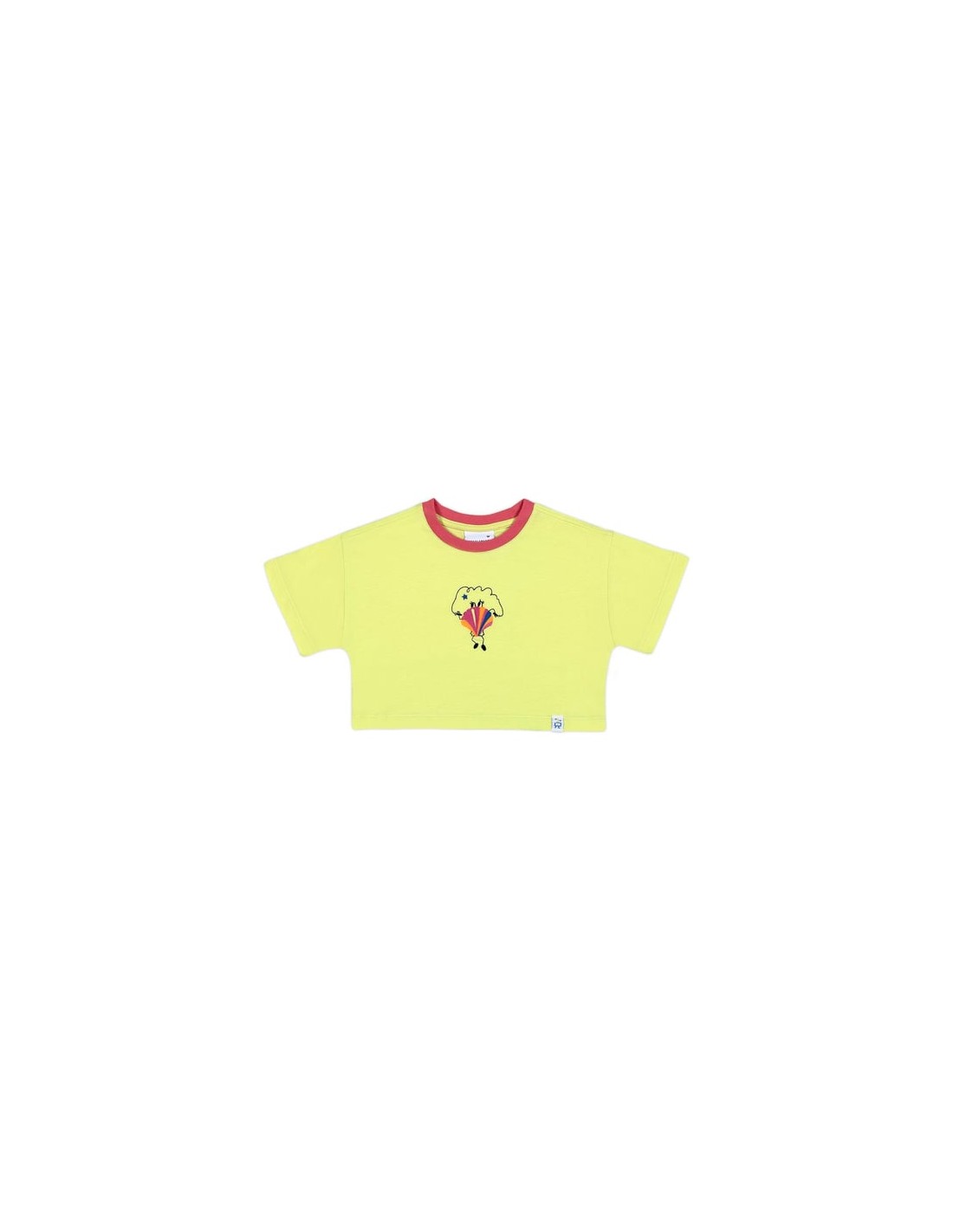 Kısa Kollu Nakışlı Crop Kız Çocuk T-Shirt - Lime (Pembe Ribana)