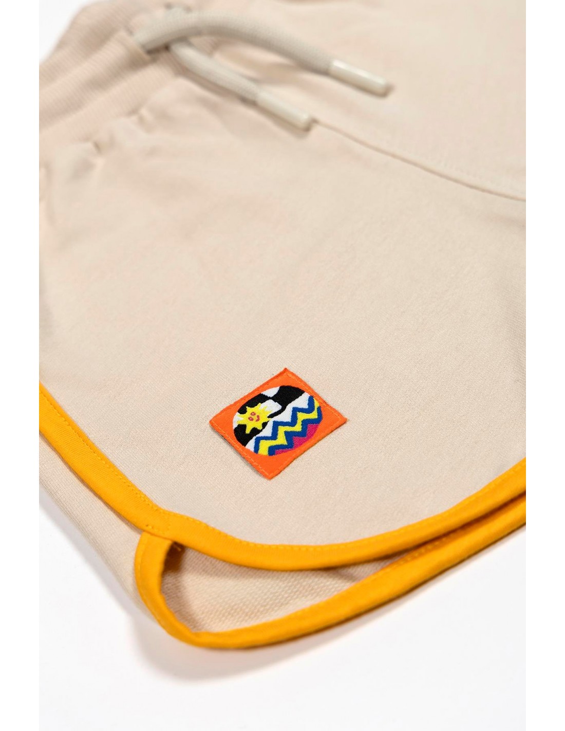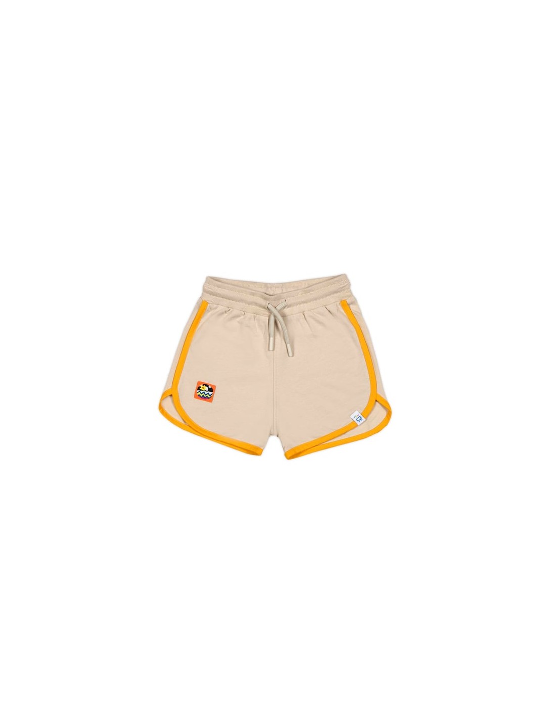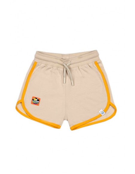 %100 pamuklu 2 iplik kumaştan, retro model, turuncu biyeli, beli lastikli ve renkli kordonlu çocuk şort