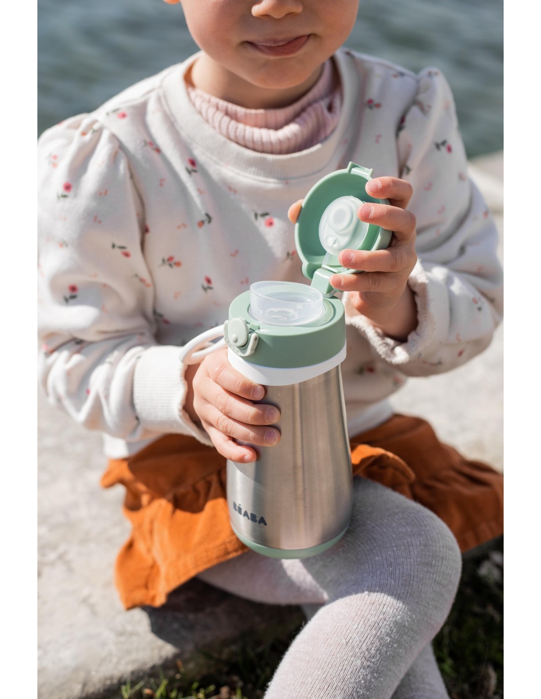 BÉABA® Emzik veya pipet olmadan doğrudan şişeden içmeyi öğrenmek için paslanmaz çelik şişe! Öğrenmenin son aşaması