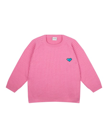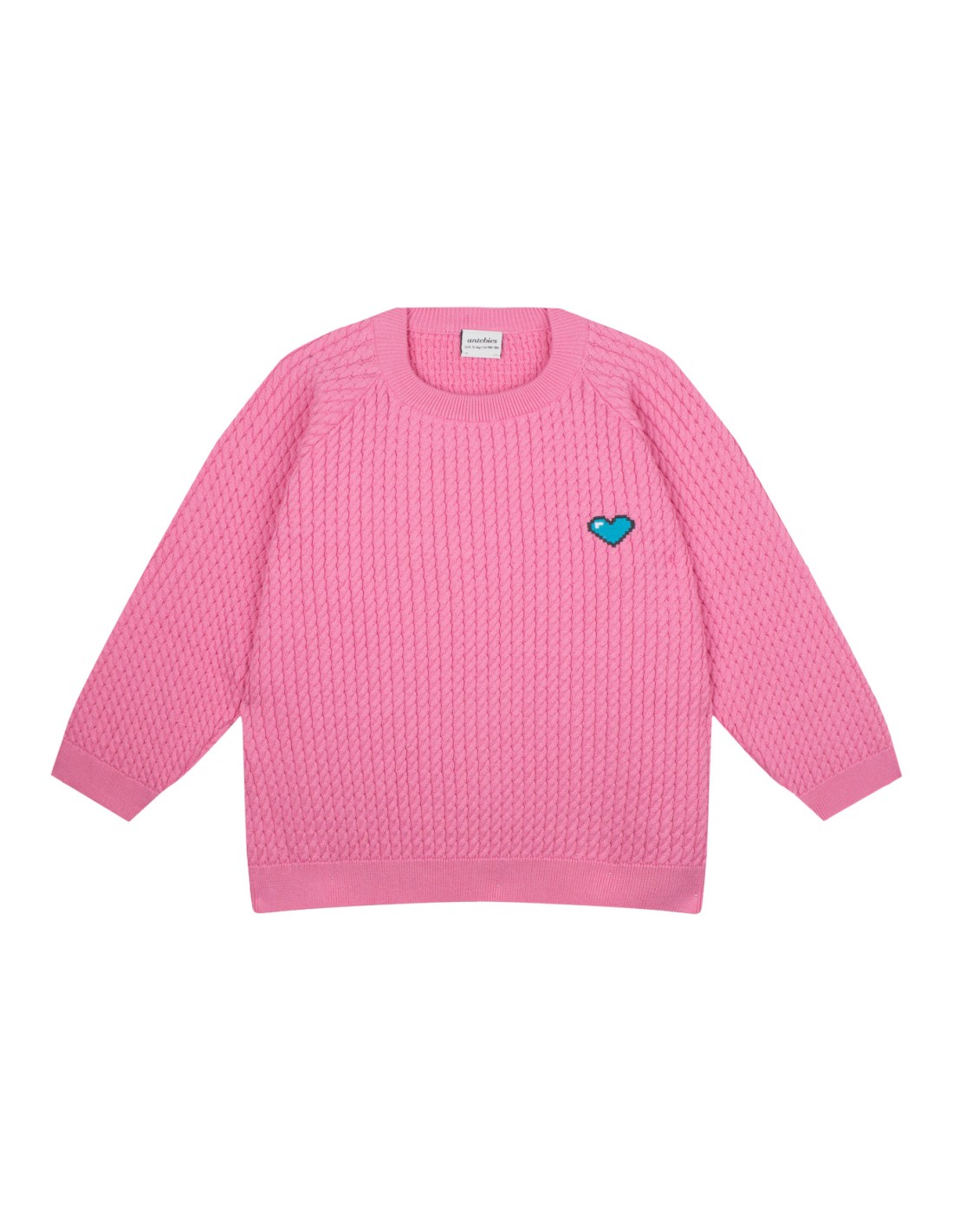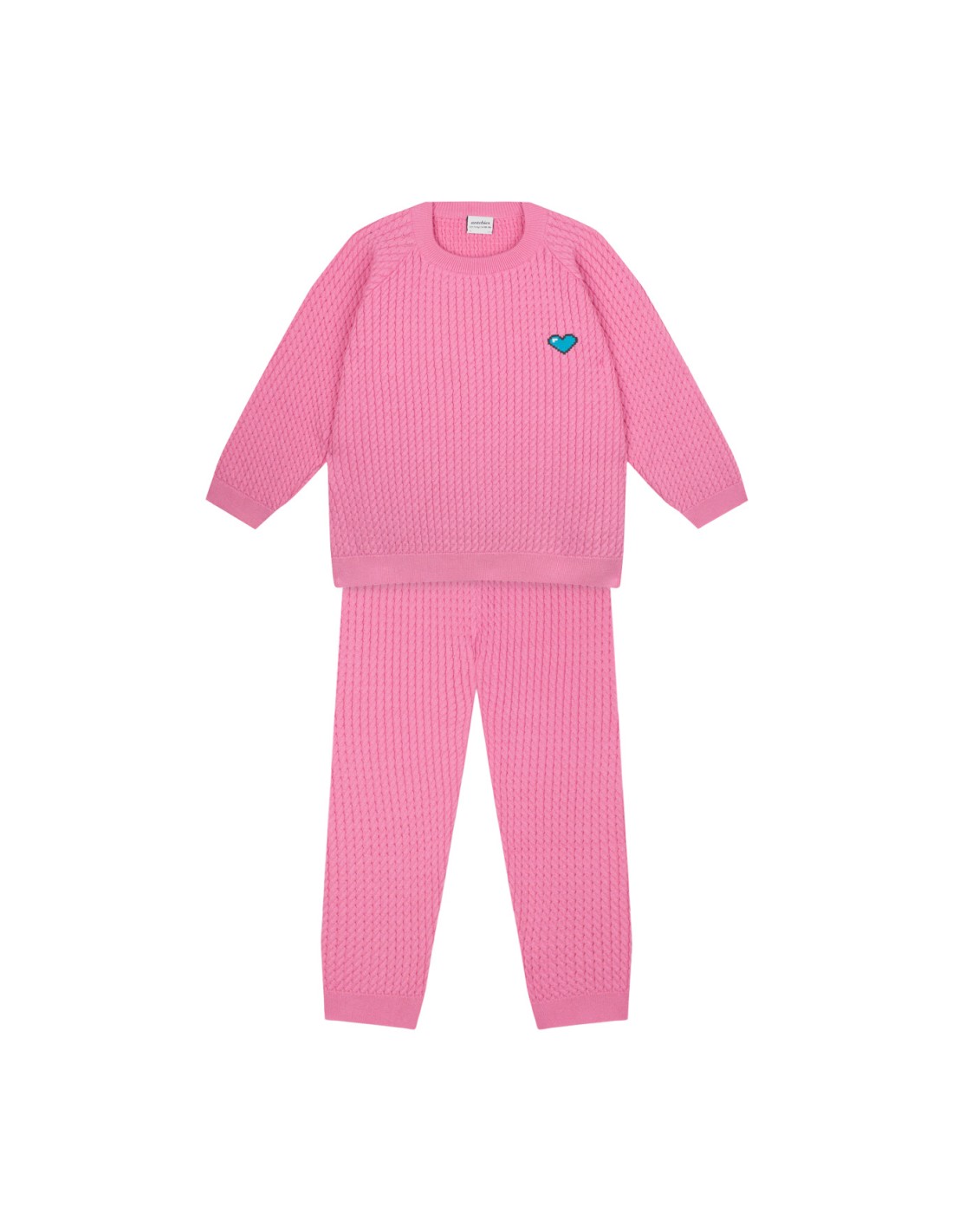 Antebies - Kalp Nakışlı Pembe Balıksırtı Kazak ve Pantolon Set