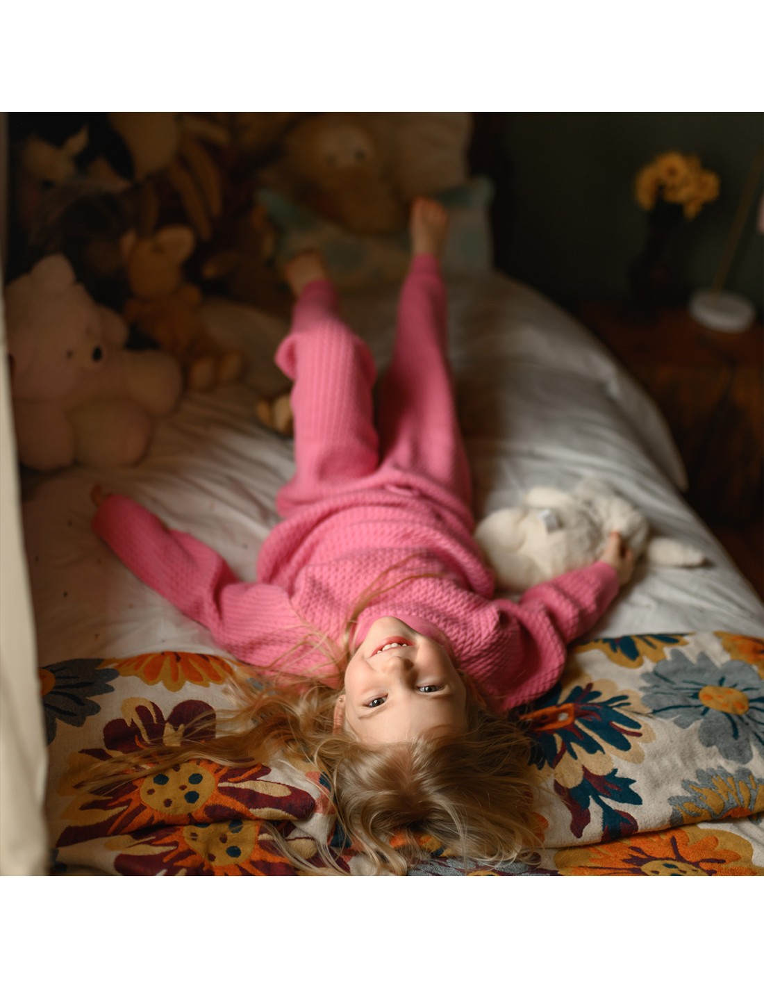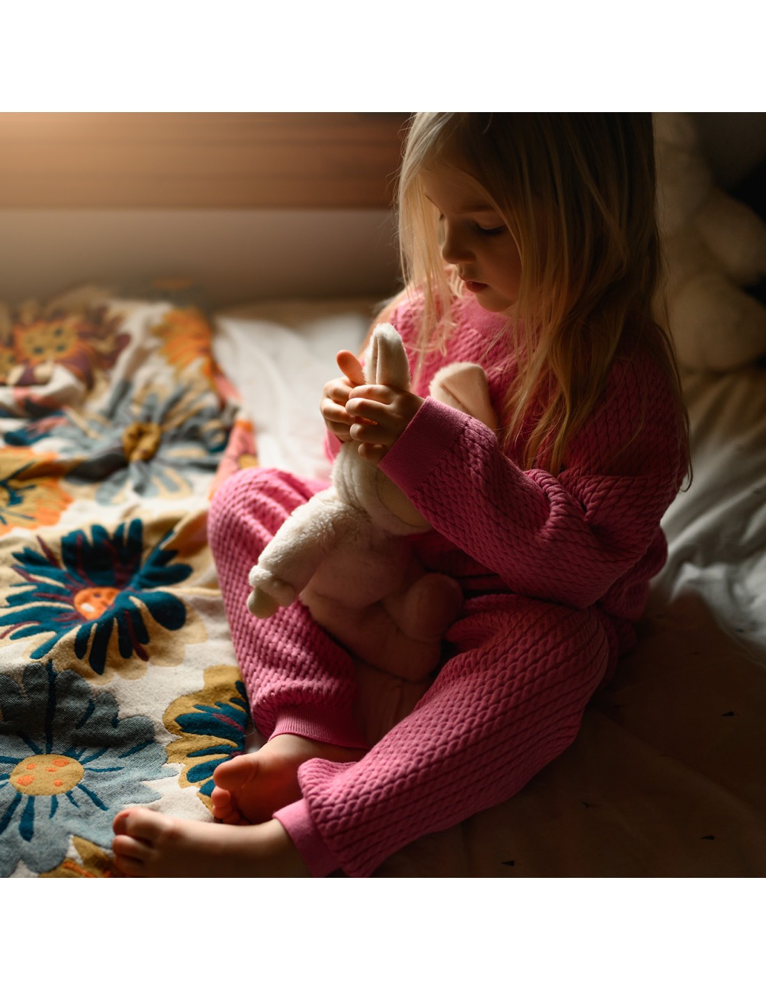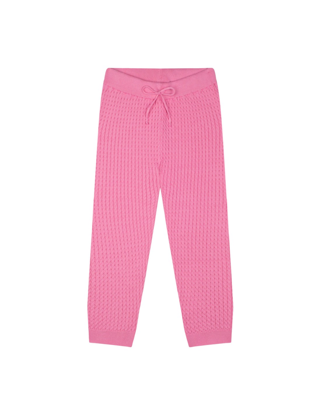 Antebies - Kalp Nakışlı Pembe Balıksırtı Kazak ve Pantolon Set