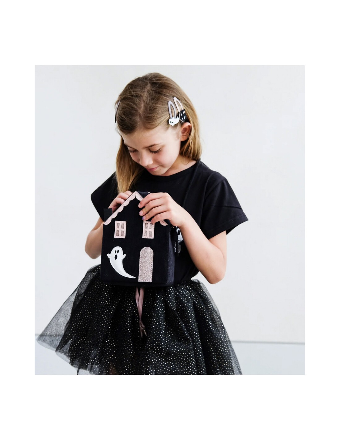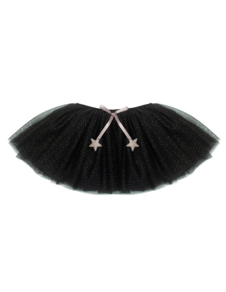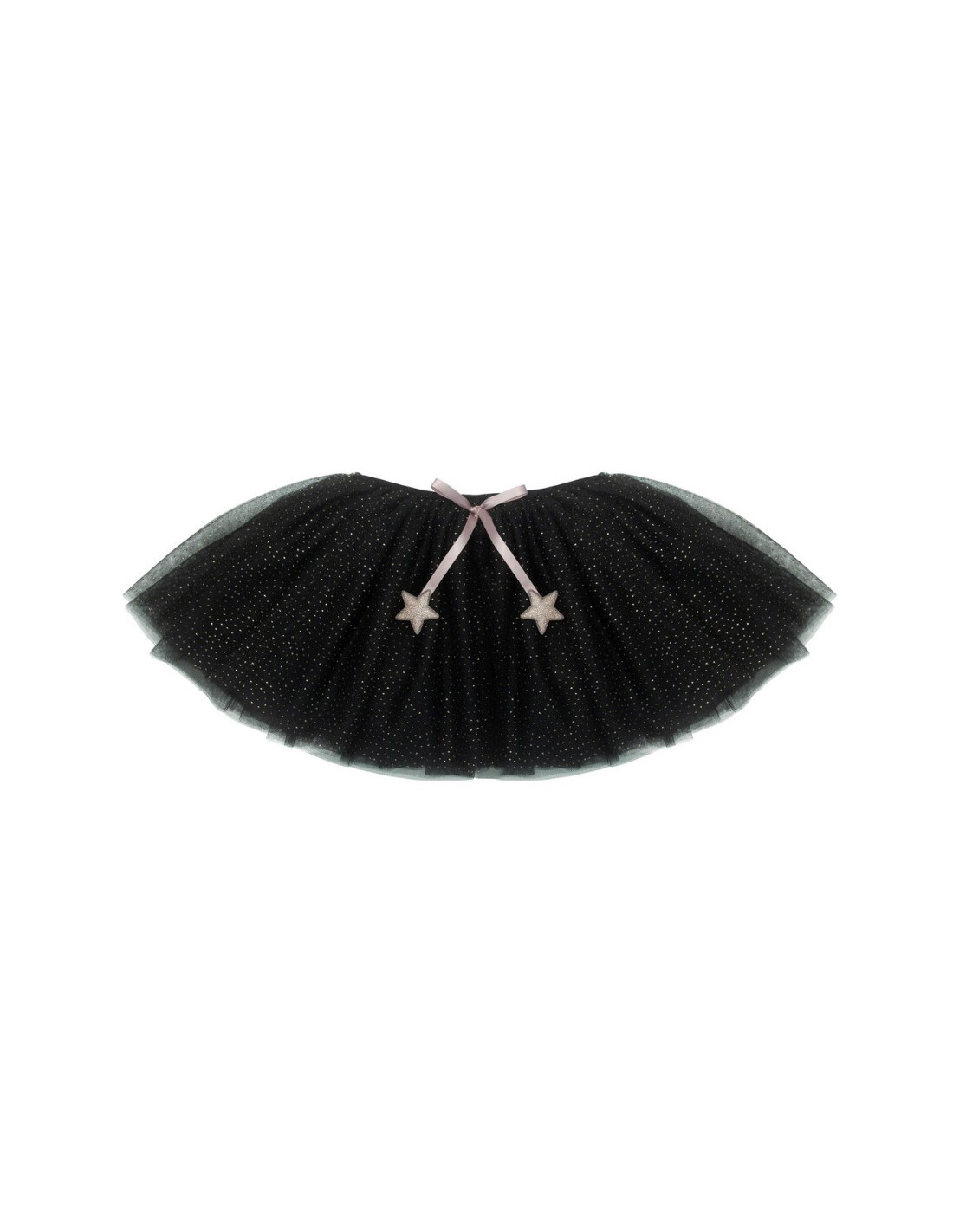 Bu büyüleyici siyah tütüye tüm mini cadılar bayılacak! Parıltılı metalik noktalara sahip tül katmanlarıyla, her gardırop için mükemmel bir tamamlayıcı.