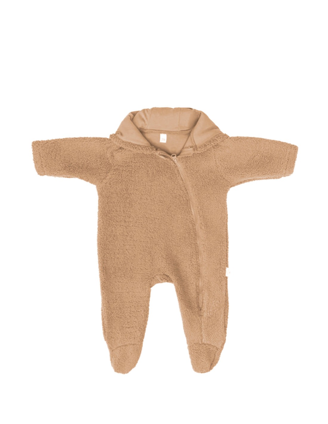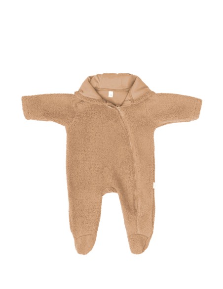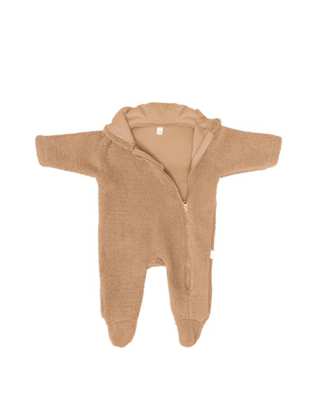 Miela Kids - Ayı Kulaklı Kapüşonlu Peluş Tulum Karamel