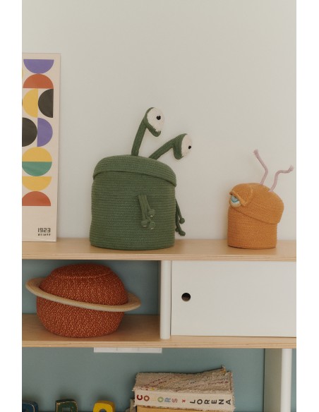 Başka bir galaksiden geldik ve galaksiler arası bir maceraya hazırız! Alien Ploot sepeti, canlı turuncu renkte örgülü pamuk kordonlarla özenle el işçiliğiyle yapılmıştır.