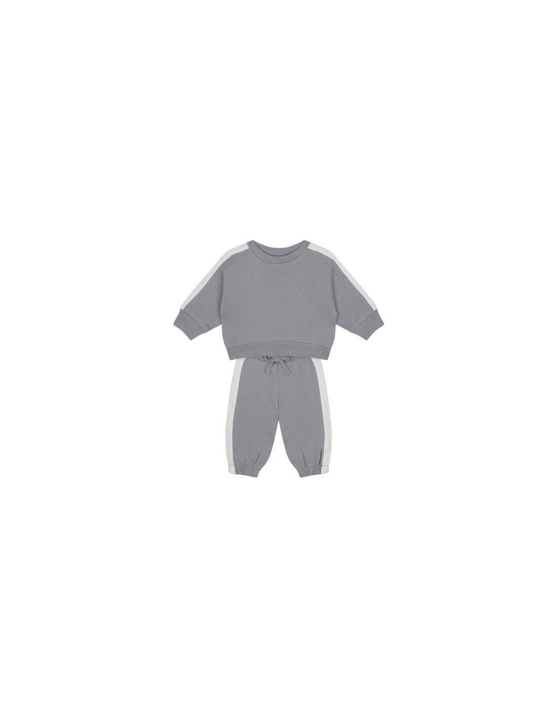 Iki parça sweatshirt pantolon set. Yuvarlak yakalı, uzun kollu sweatshirtumuz rahatlık için ribana manşetlerle tamamlanmıştır. Elastik belli ve paçalı pantalonumuz bebeğinizin beline göre ayarlanabilir şekilde kordonlu olarak tasarlanmıştır. Bebeğinizin güvenliğini sağlamak amacıyla kordonlar dikilmiştir.
