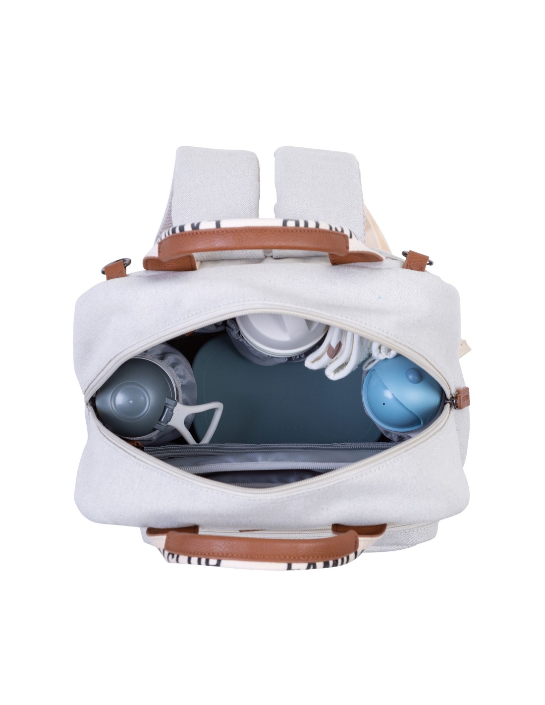 İki büyük bölme ve dokuz küçük bölme ile donatılmıştır. Fermuarlı bir kese, gerektiğinde kirli kıyafetleri saklamanızı sağlar. Ek küçük keseler, bebeğinizin emziğini ve kendi cüzdanınızı ve anahtarlarınızı güvenli bir şekilde saklamanızı mümkün kılar. İki soğutma kesesi, içeceğinizi ve atıştırmalıklarınızı gün boyunca taze tutar. Küçük çocuğunuz öğle yemeğinde ortalığı dağıtırsa, özellikle ıslak mendiller için tasarlanmış çantanın önündeki kese ekstra kullanışlı olacaktır. Erişimi çok kolaydır, bu nedenle bir daha asla ıslak mendil aramak zorunda kalmayacaksınız! Ve tabii ki, alt değiştirme matı da dahildir.