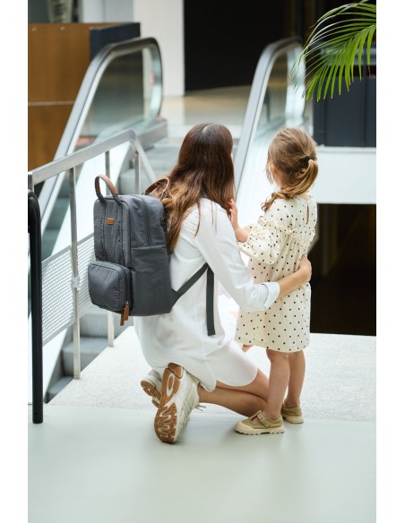 İki büyük bölme ve dokuz küçük bölme ile donatılmıştır. Fermuarlı bir kese, gerektiğinde kirli kıyafetleri saklamanızı sağlar. Ek küçük keseler, bebeğinizin emziğini ve kendi cüzdanınızı ve anahtarlarınızı güvenli bir şekilde saklamanızı mümkün kılar. İki soğutma kesesi, içeceğinizi ve atıştırmalıklarınızı gün boyunca taze tutar. Küçük çocuğunuz öğle yemeğinde ortalığı dağıtırsa, özellikle ıslak mendiller için tasarlanmış çantanın önündeki kese ekstra kullanışlı olacaktır. Erişimi çok kolaydır, bu nedenle bir daha asla ıslak mendil aramak zorunda kalmayacaksınız! Ve tabii ki, alt değiştirme matı da dahildir.