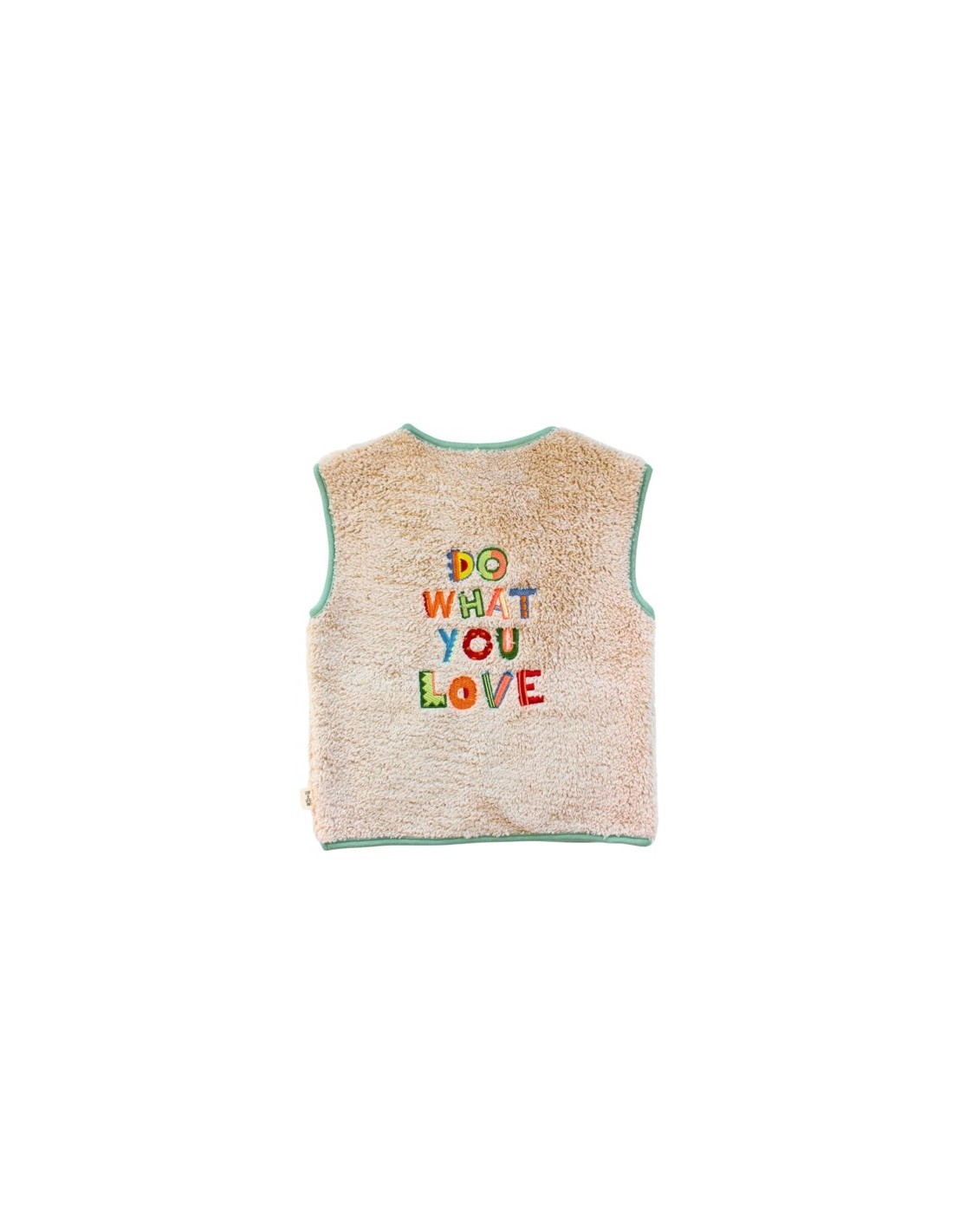 Miela Kids - Slogan Nakışlı Peluş Yelek Bej
