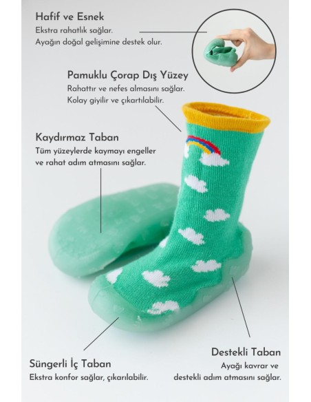 Çocukların rahatlığı ve güvenliği için özel olarak tasarlanmış kaydırmaz tabanlı çorap/panduf, evde keyifli zaman geçirirken en iyi arkadaşı olacak. Yumuşak ve hafif malzemeden üretilmiş olan bu çorap/panduf, ayakları sıcak tutarken aynı zamanda hareket özgürlüğü sağlar. Kaydırmaz tabanı, çocukların ev içinde koşarken veya zıplarken kayma riskini en aza indirir, böylece ebeveynler de çocuklarının güvenliğinden emin olabilir.