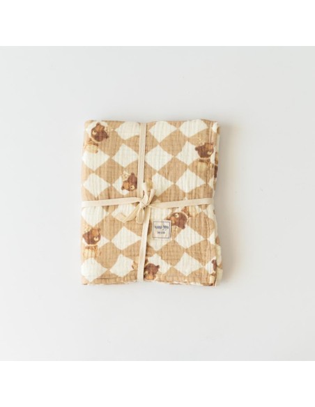 Mama Yoyo - Organik Bebek Battaniyesi 4 Kat Müslin Ayı Desenli