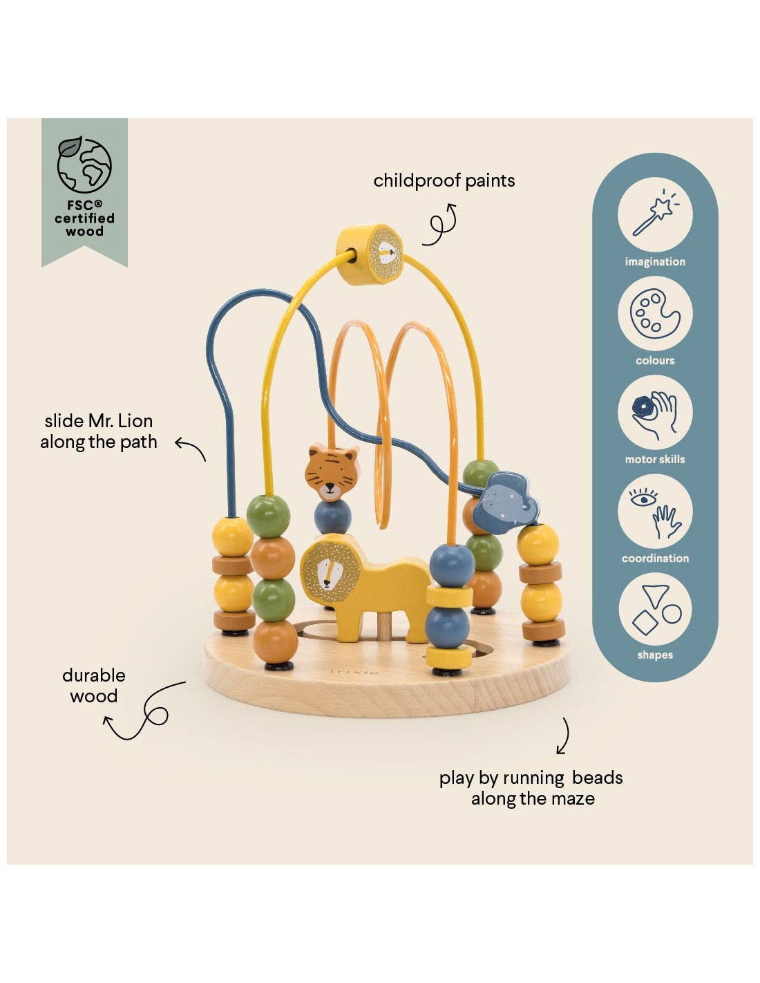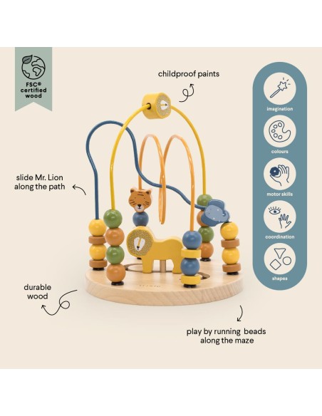 Sevimli dostlarınızın yardıma ihtiyacı var – onlara boncuk labirentinden geçmelerine yardımcı olabilir misiniz? Küçük çocuğunuz, bu güzel oyuncakta dayanıklı teller üzerinde bulunan renkli hayvan figürlerini kurtarma görevine geliyor – motor becerilerini, kavrama tutuşunu geliştirmek ve saymayı öğrenmeye ilk adımlarını atmak için mükemmel bir oyuncak. Oynamanın pek çok yolu olduğu için, bu oyuncak yıllarca değerini koruyacak bir hazine olacak