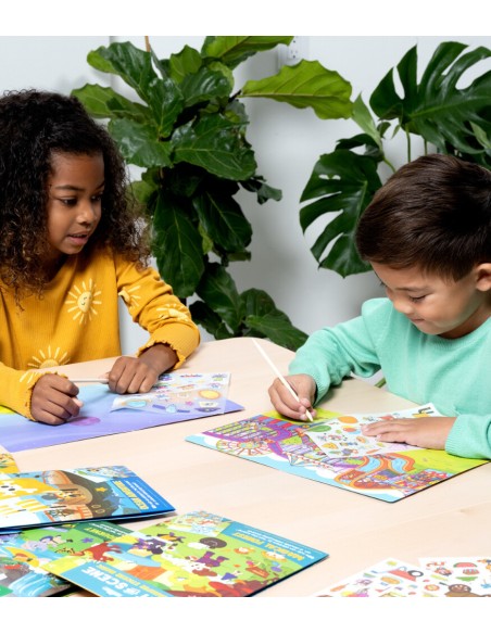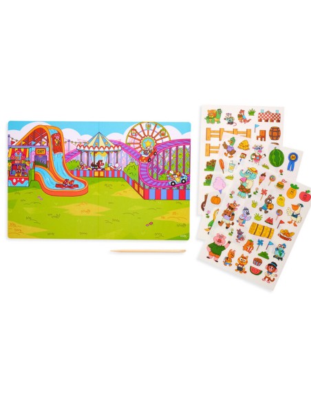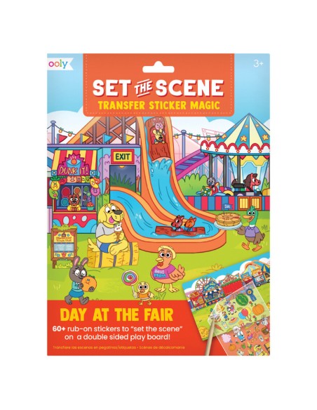 Bu transfer çıkartma seti ile panayırda eğlenceli bir gün geçirin! Setin içinde yer alan oyun alanına dilediğiniz çıkartmayı tahta aparat yardımıyla uygulayın, sahneyi canlandırın! Atlı karıncaya kim binecek? Birisi su kaydırağından kaymaya cesaret edebilecek mi? Kararı çocuklara bırakın.