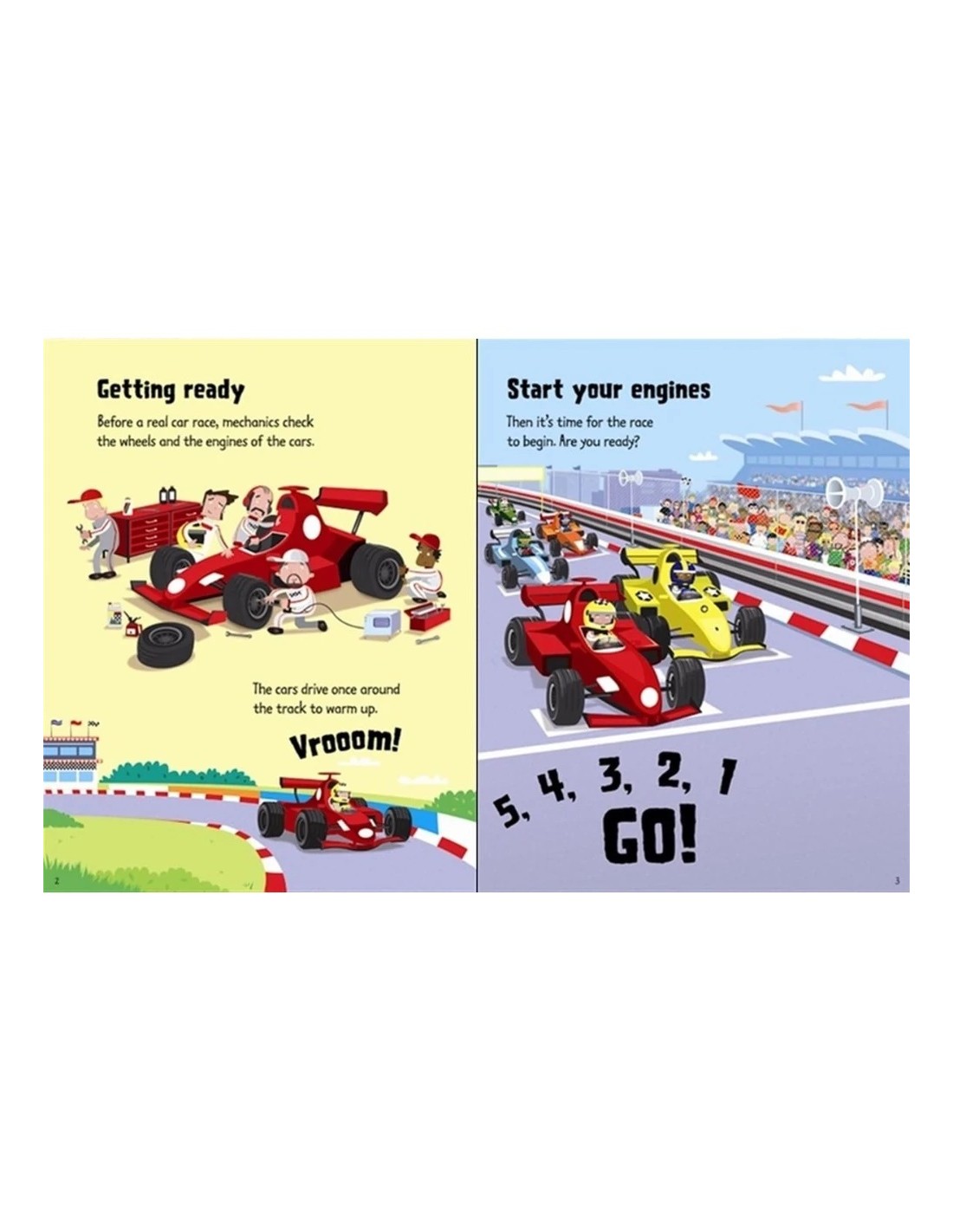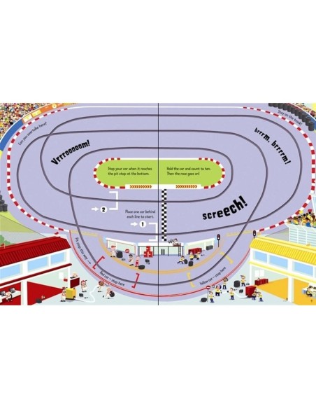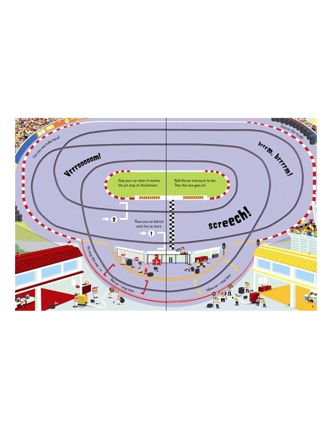 Özel pist tasarımı: Kitapta üç farklı yarış pisti bulunur ve çocuklar bu pistlerde arabalarını yarıştırabilir.